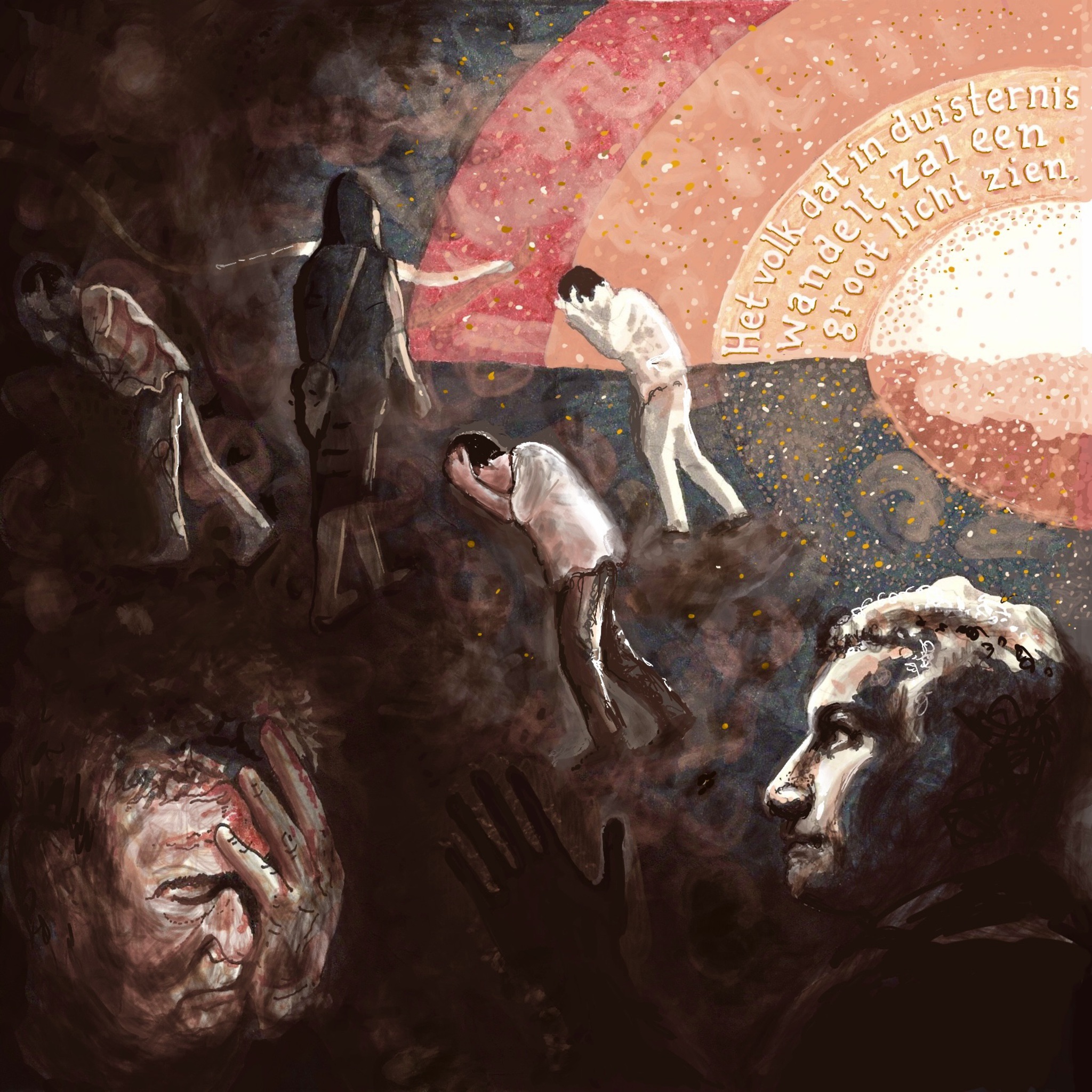 Waar wij langs eigen wegen wilden gaan en woonden in de schaduw van de dood in duisternis die ons geen uitweg bood daar wees Uw Woord het Licht der lichten aan.