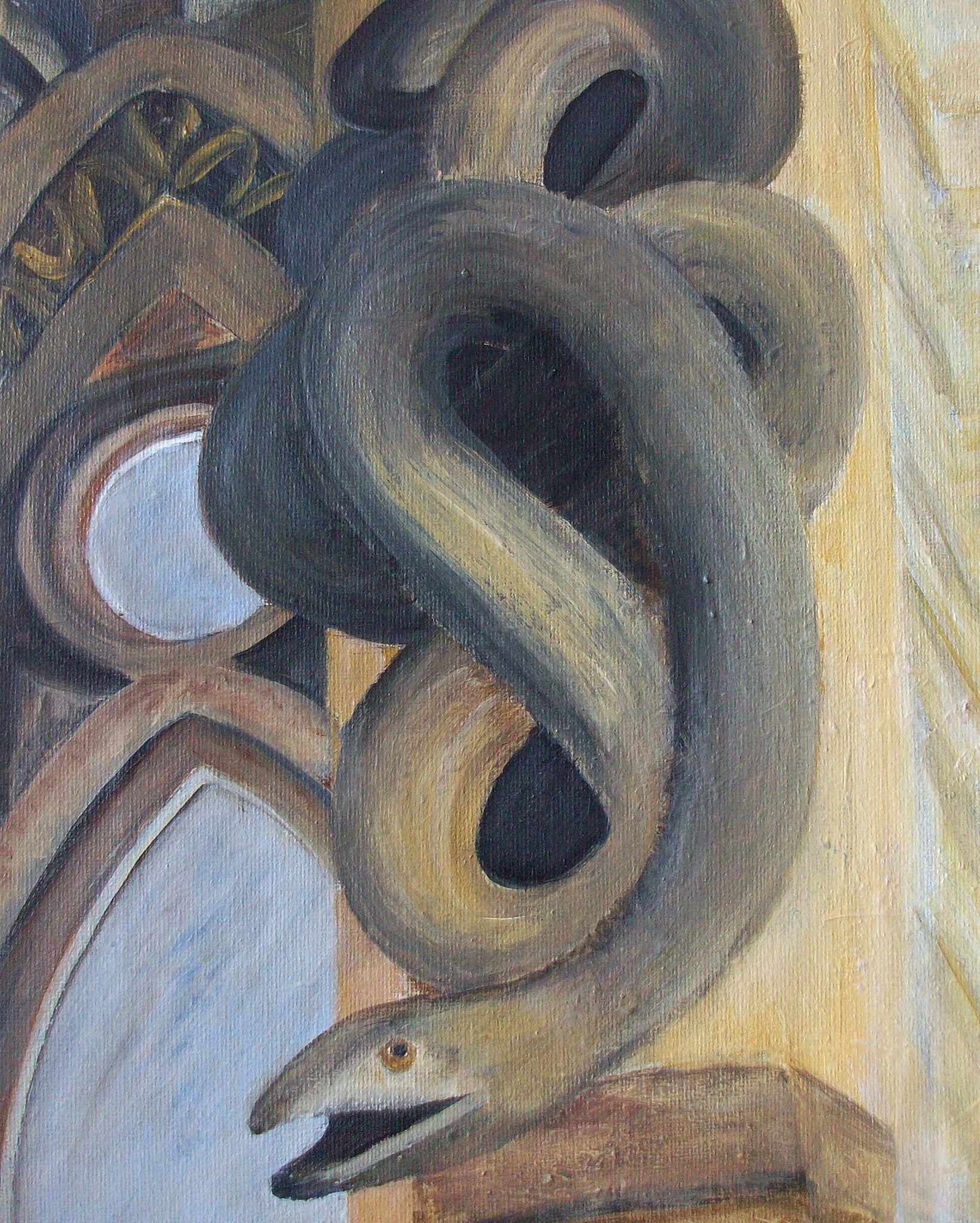 Enkele treffende aspecten van de Coronacrisis heb ik samengebracht in één compositie bestaande uit zes doeken op een houten paneel. Hiervoor heb ik mijn inspiratie opgedaan in het werk van Antoni Gaudi in Barcelona. Het volledige werk vindt U terug onder de rubriek "exposities", meer bepaald de Groepstentoonstelling in het Ravenhof te Stabroek in 2021. De slang, een detail van de Sagrada Familia, staat symbool voor het gif dat ons bedreigt.