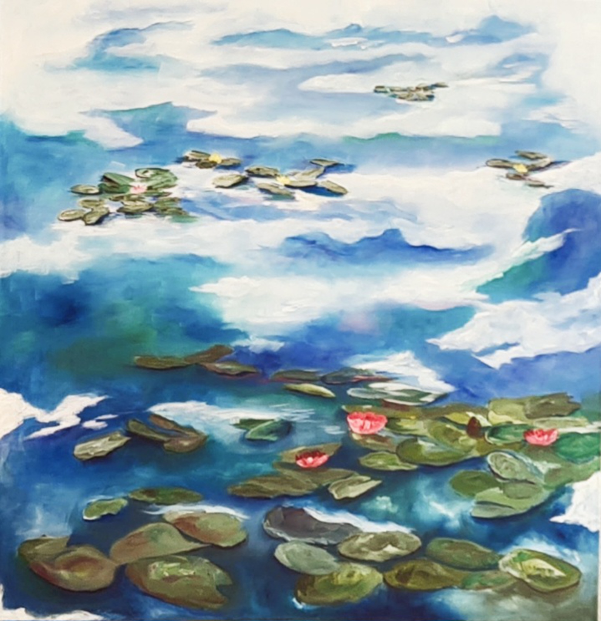 Groot doek van 90 x 90 en heerlijk los geschilderd.