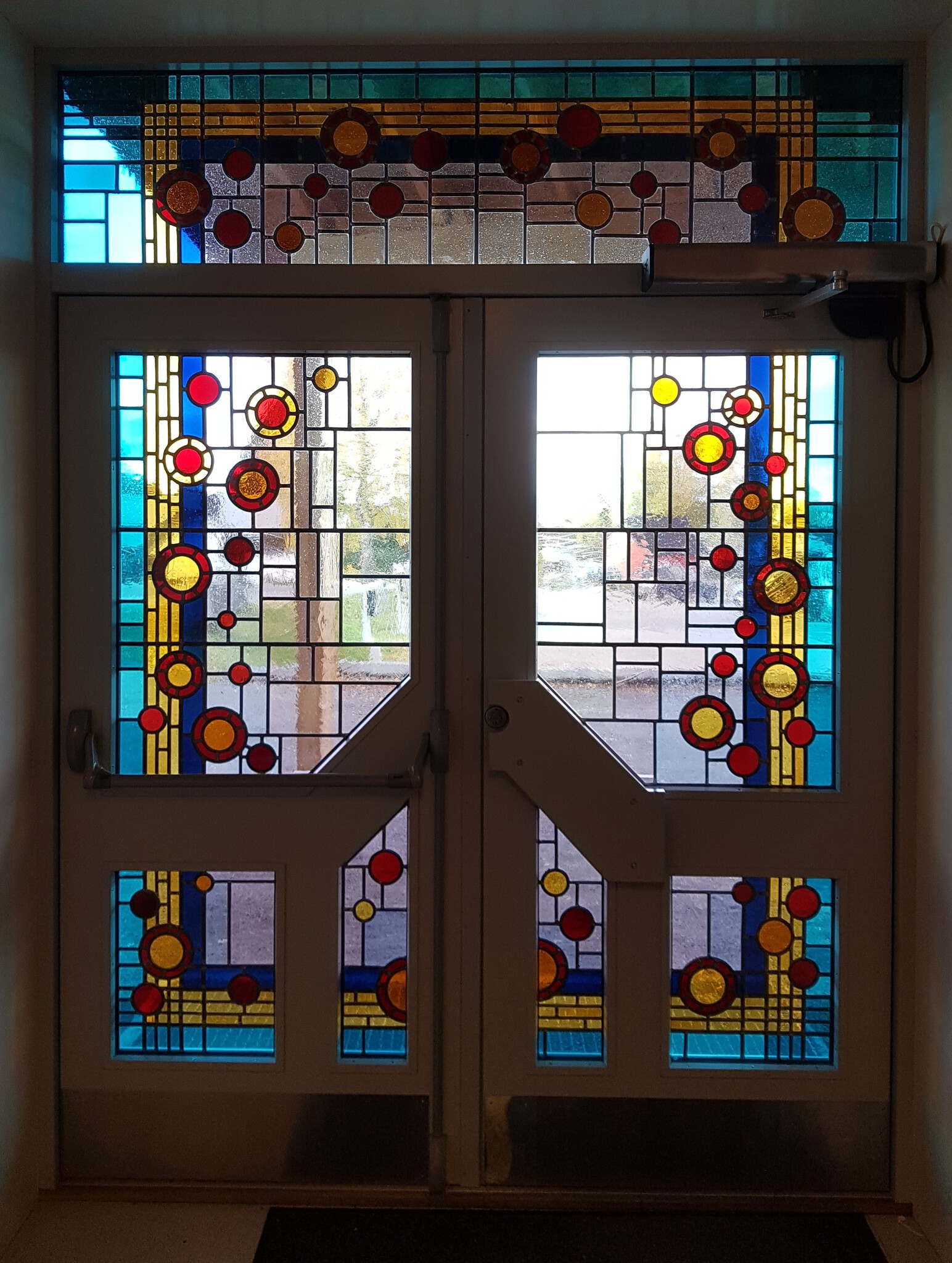 Rood Geel Glas Lood Ingang Blaauw Turquase