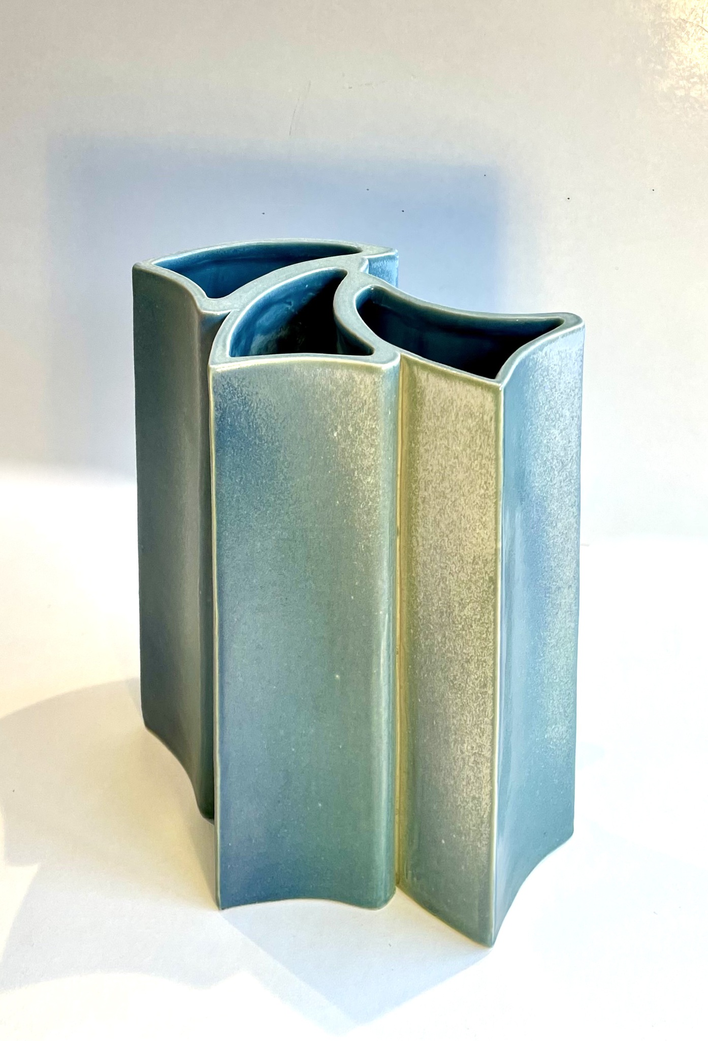 Deze vaas is samengesteld uit drie afzonderlijk gegoten elementen. Er is zowel beweging als ritme in te ontdekken.