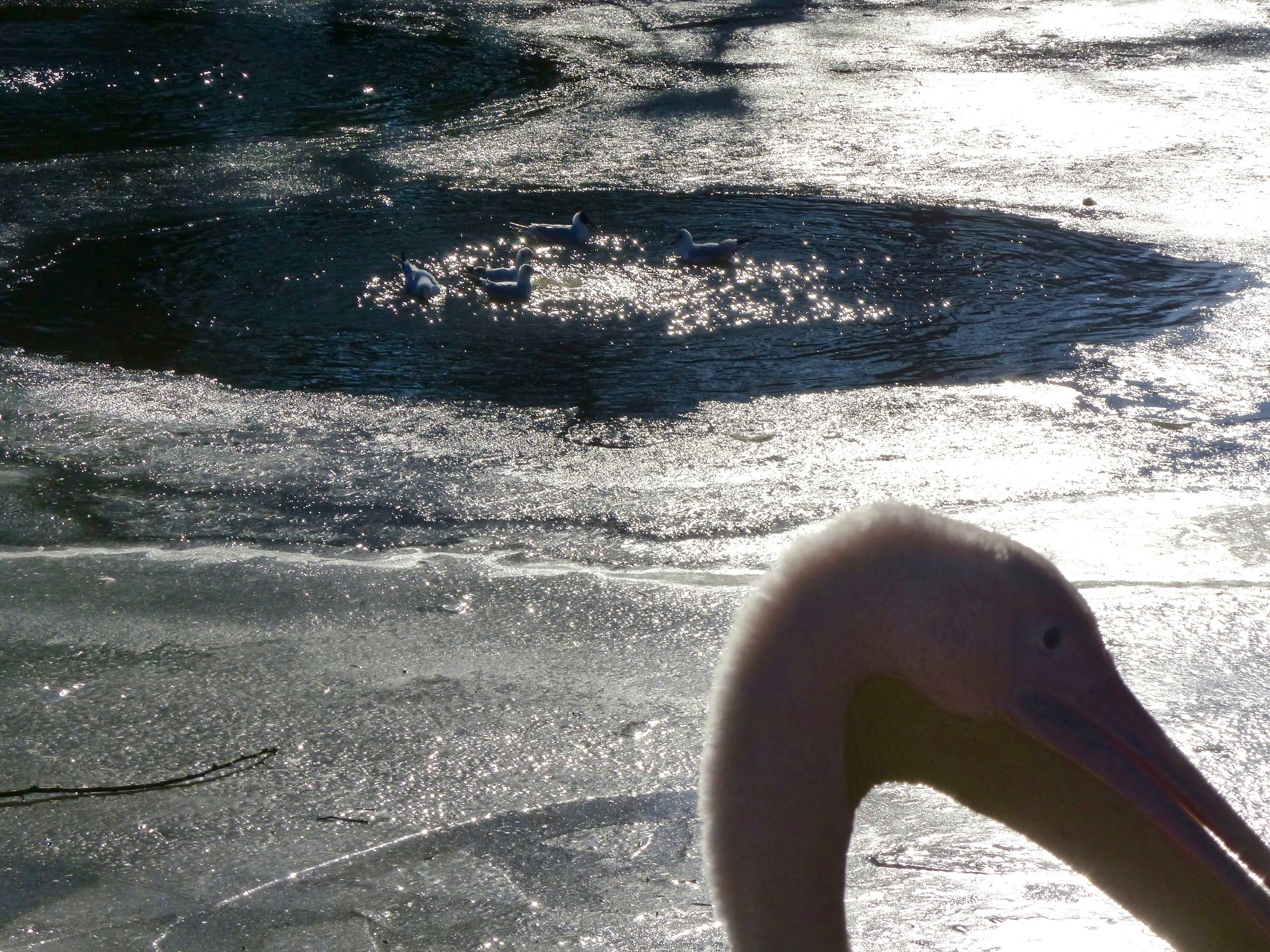 Pelikanen zijn geweldig leuke en mooie vogels. Het is even zoeken in deze foto, dat is precies mijn bedoeling.
