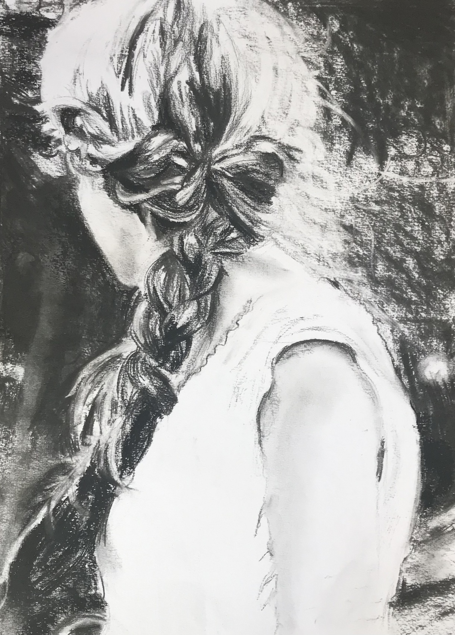 Meisje Papier Tekening Houtskool Haar Lente