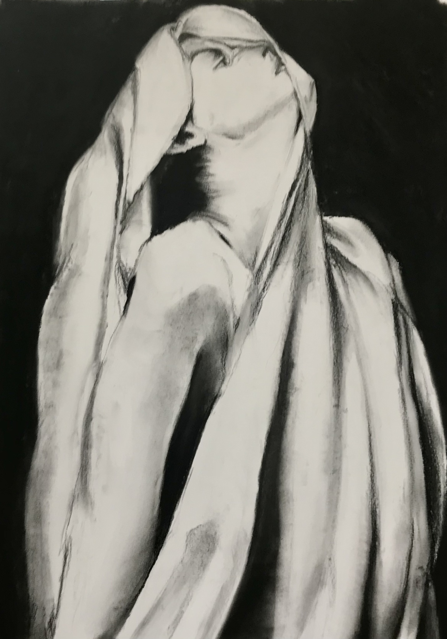 Wit Meisje Zwart Papier Houtskool Laken Sluier