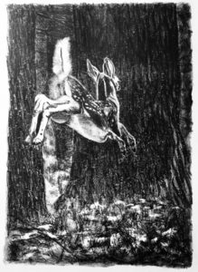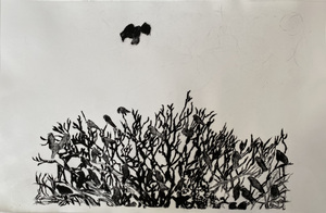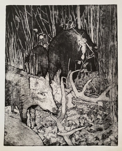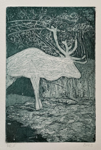 Marian Visser (Middelharnis, 1968) maakt etsen, litho's, lino's en tekeningen van (inheemse) dieren, mensen en bomen.