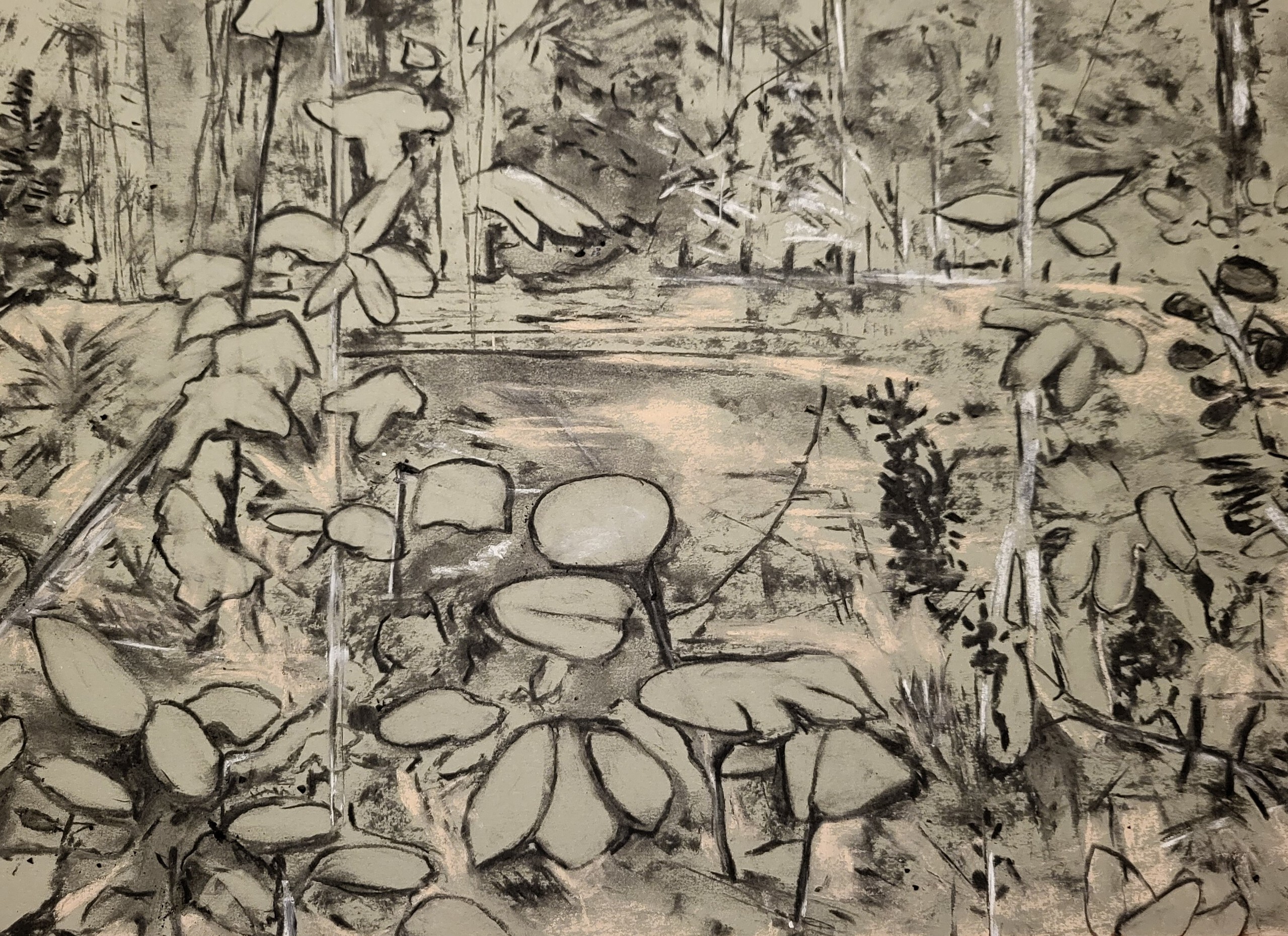 Houtskool en softpastel op papier Fabriano Moss