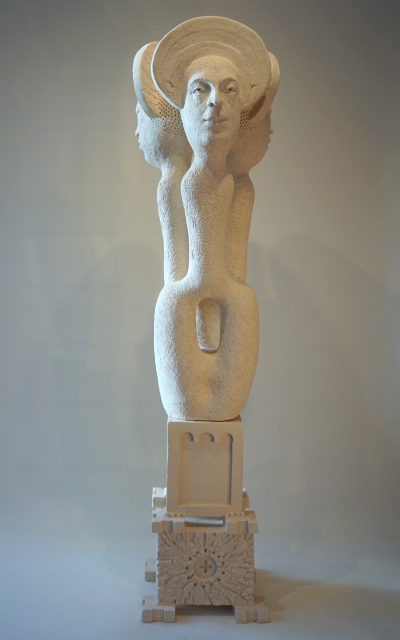 Wit Beeld Sokkel Klei Mensfiguur Keramiek Lichtwezen Stapeling Abstract-figuratief Open-gesloten Heiligenbeeld Geometrisch-organisch