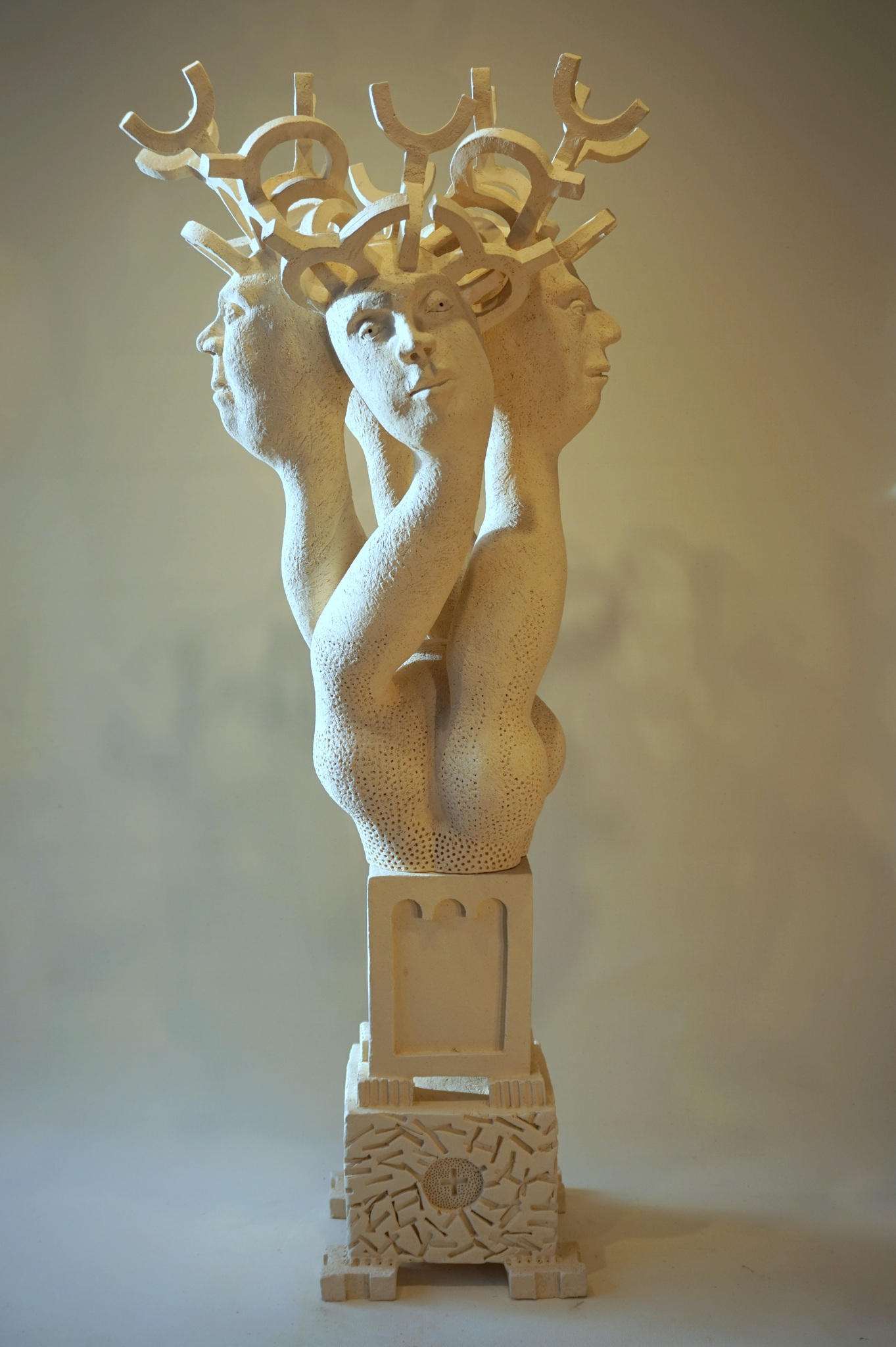 Wit Beeld Sokkel Klei Mensfiguur Keramiek Lichtwezen Stapeling Abstract-figuratief Open-gesloten Heiligenbeeld Geometrisch-organisch