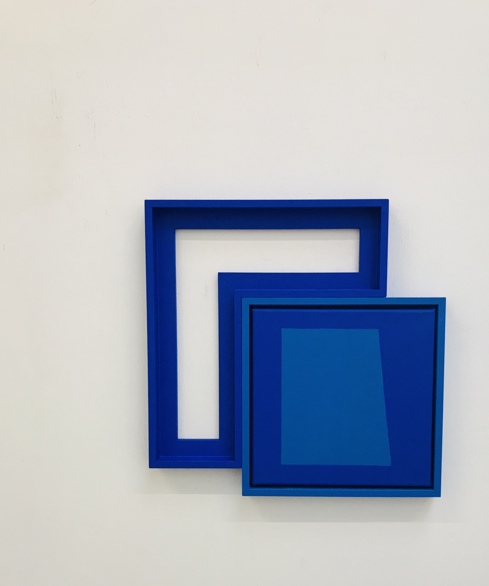 Deze compositie bestaat uit 2 delen / een acryl op linnen gedeelte en een apart gemaakt frame van hout dat los op het schilderij ligt en verplaatsbaar is