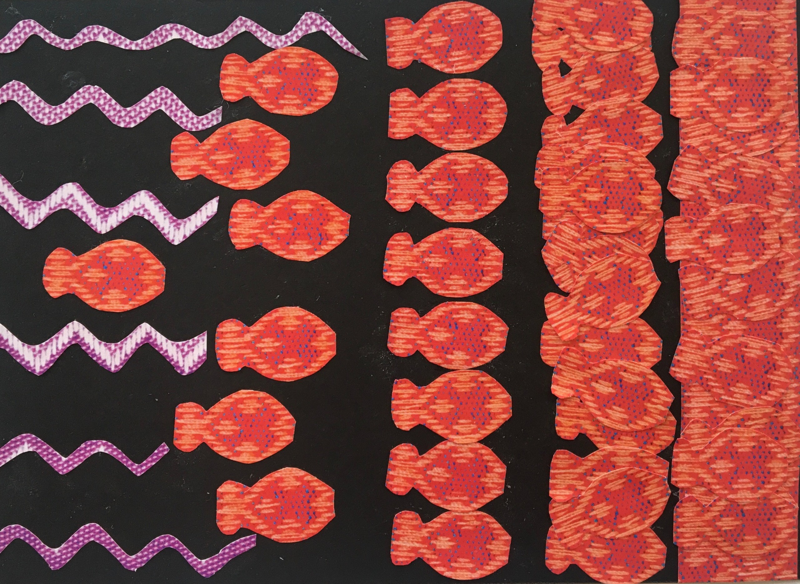 Ik maak papieren collages. Hiervoor gebruik ik tijdschriften, bij voorkeur de meer glossy uitgaven. Ik volg mijn intuïtie en gebruik mijn verstand bij het oplossen van 'problemen' in de verbinding van de papieren onderdelen.