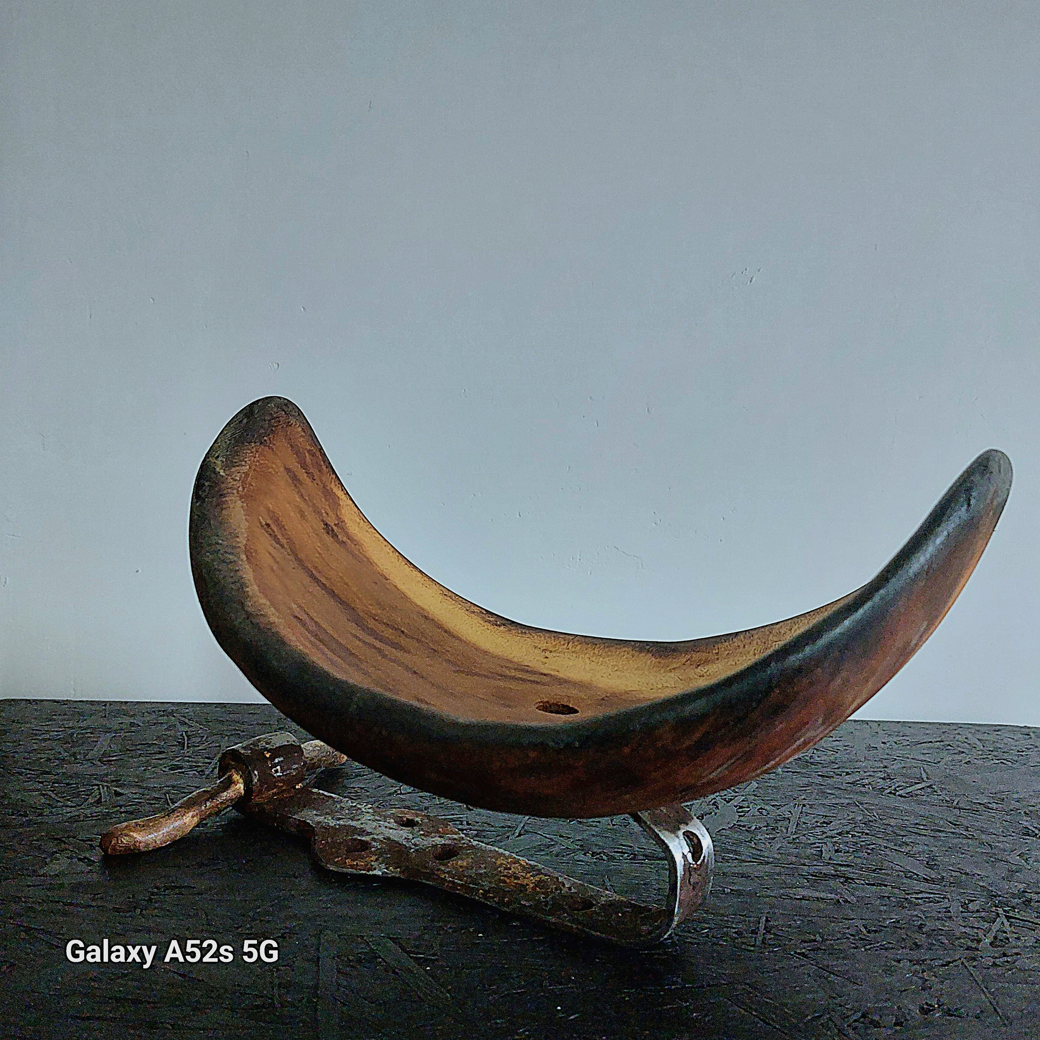 houten schaalobject op smeedijzeren voet
