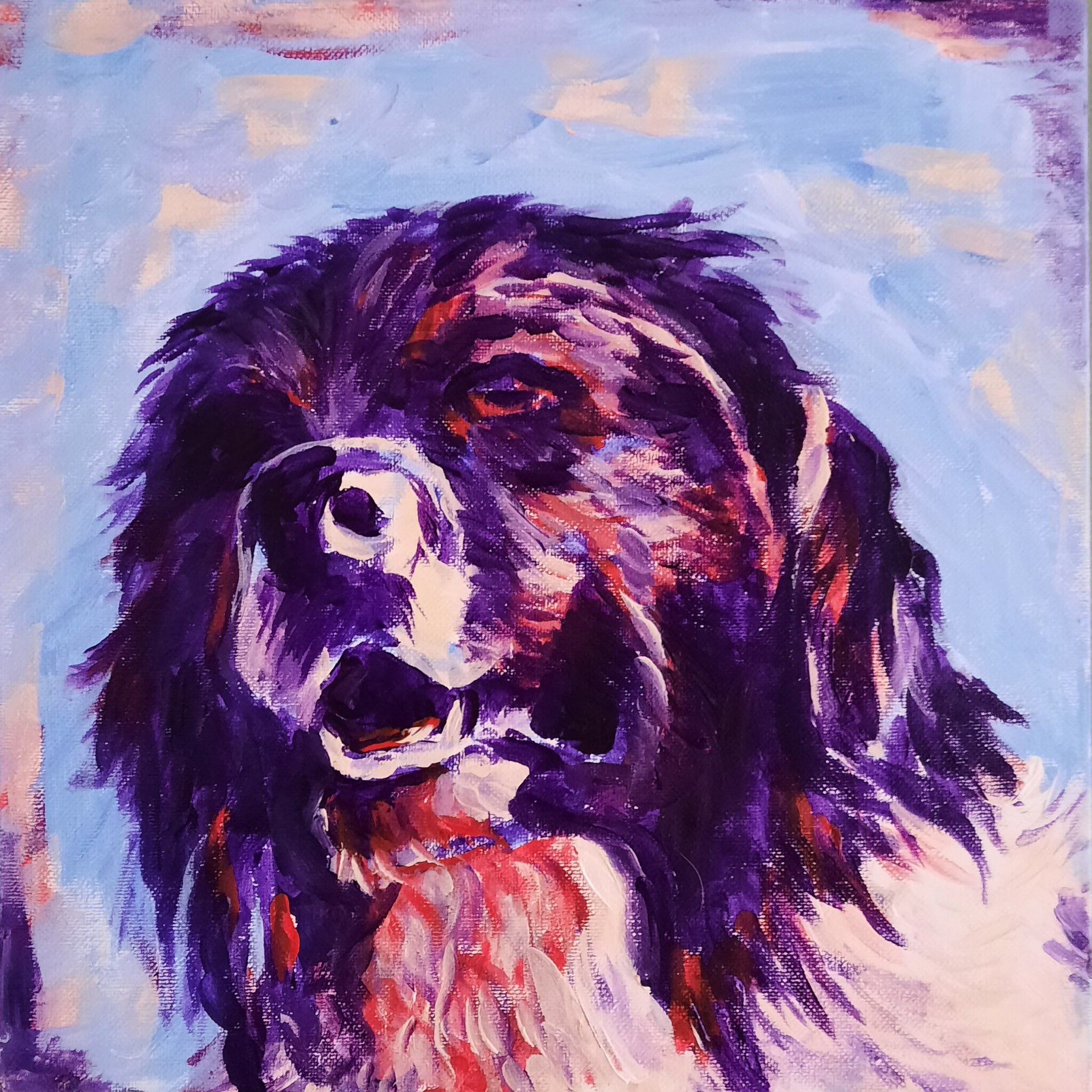 Portret van Mick, Friese Stabij 2018 acryl op doek.