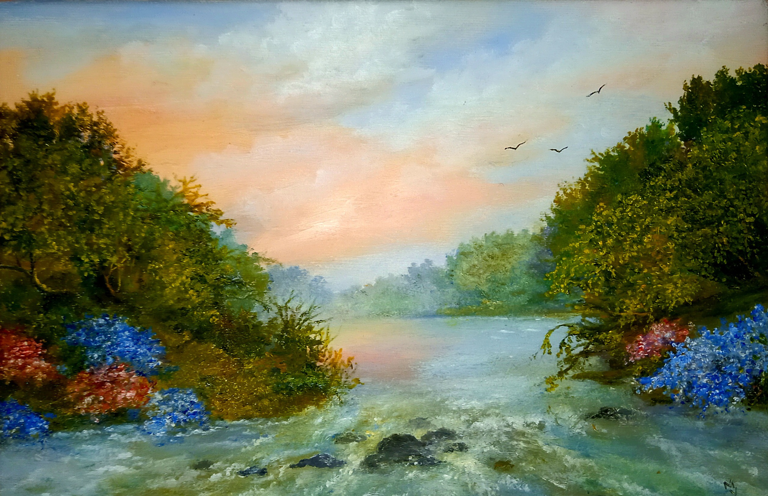 Dit werk is een fantasielandschap met een meer gedurende zonsopkomst. Zoals in de meeste werken is het thema water waarbij de balans tussen het licht en de kleuren van de natuur een rol speelt.