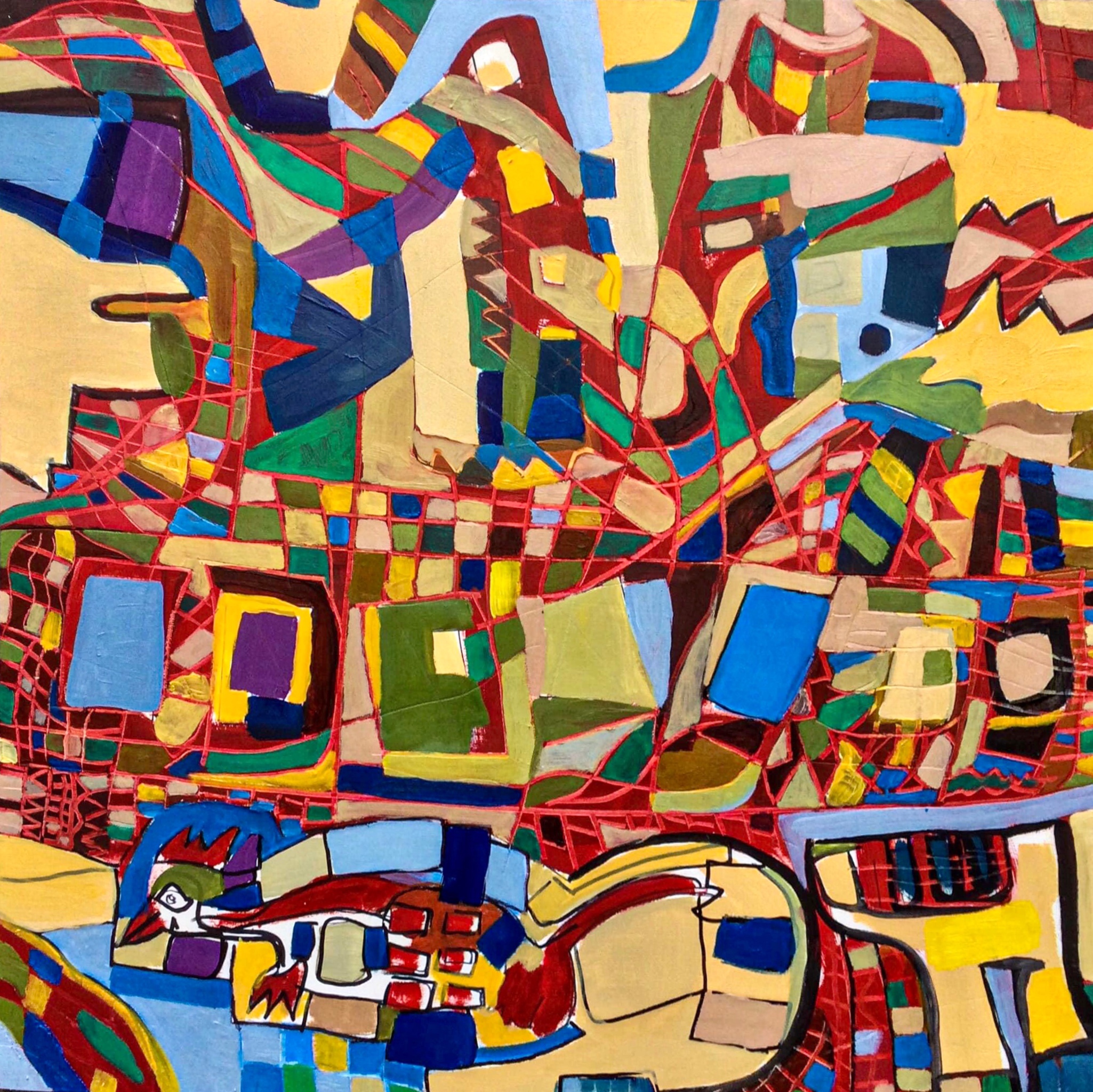 Abstract Figuratief Olieverf Paneel Vogelkat