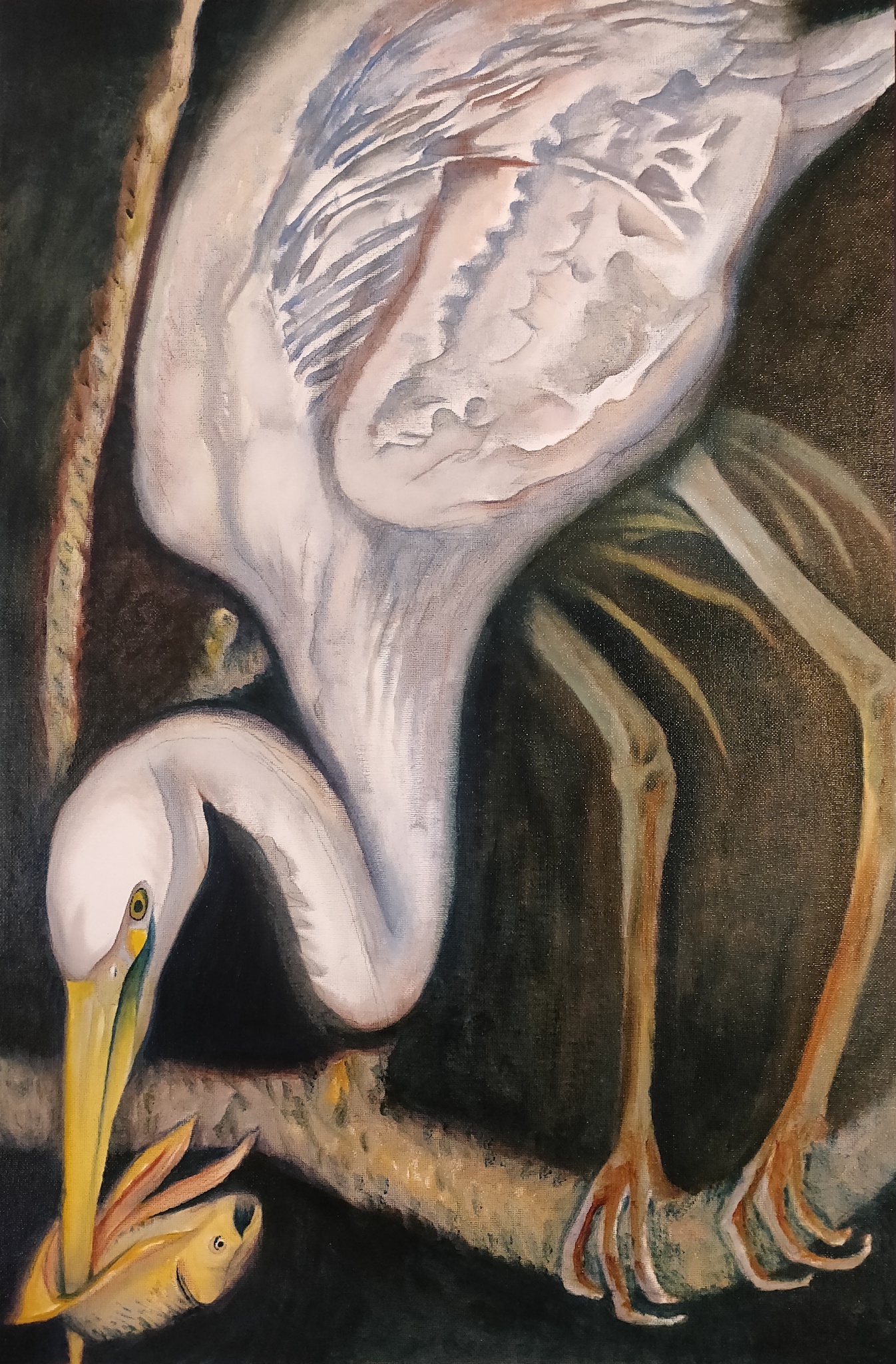 Verkocht Deze reiger werd halverwege het maakproces het krachtdier van een vriendin! Ik heb het instinct proberen te laten zien, zonder aarzelen de vis doden voor de voeding van het vege lijf.