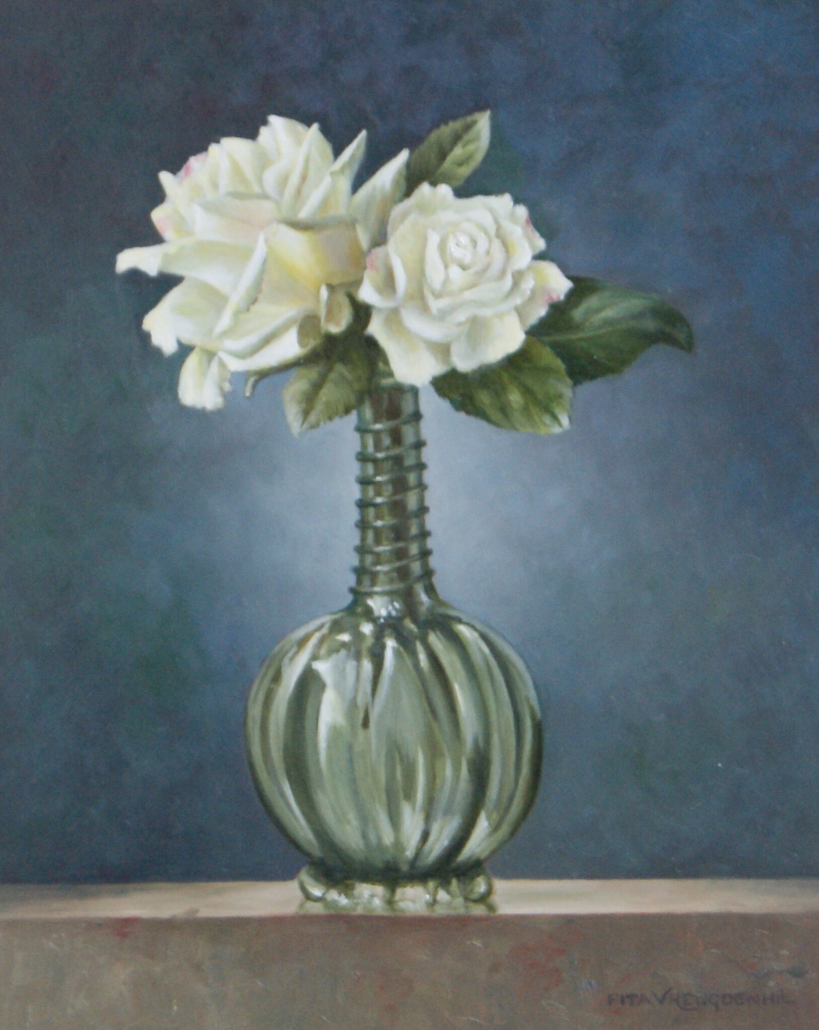 Witte rozen in een antiek flesje Info: Kunstatelier Pita, Emst www.pitavreugdenhil.nl