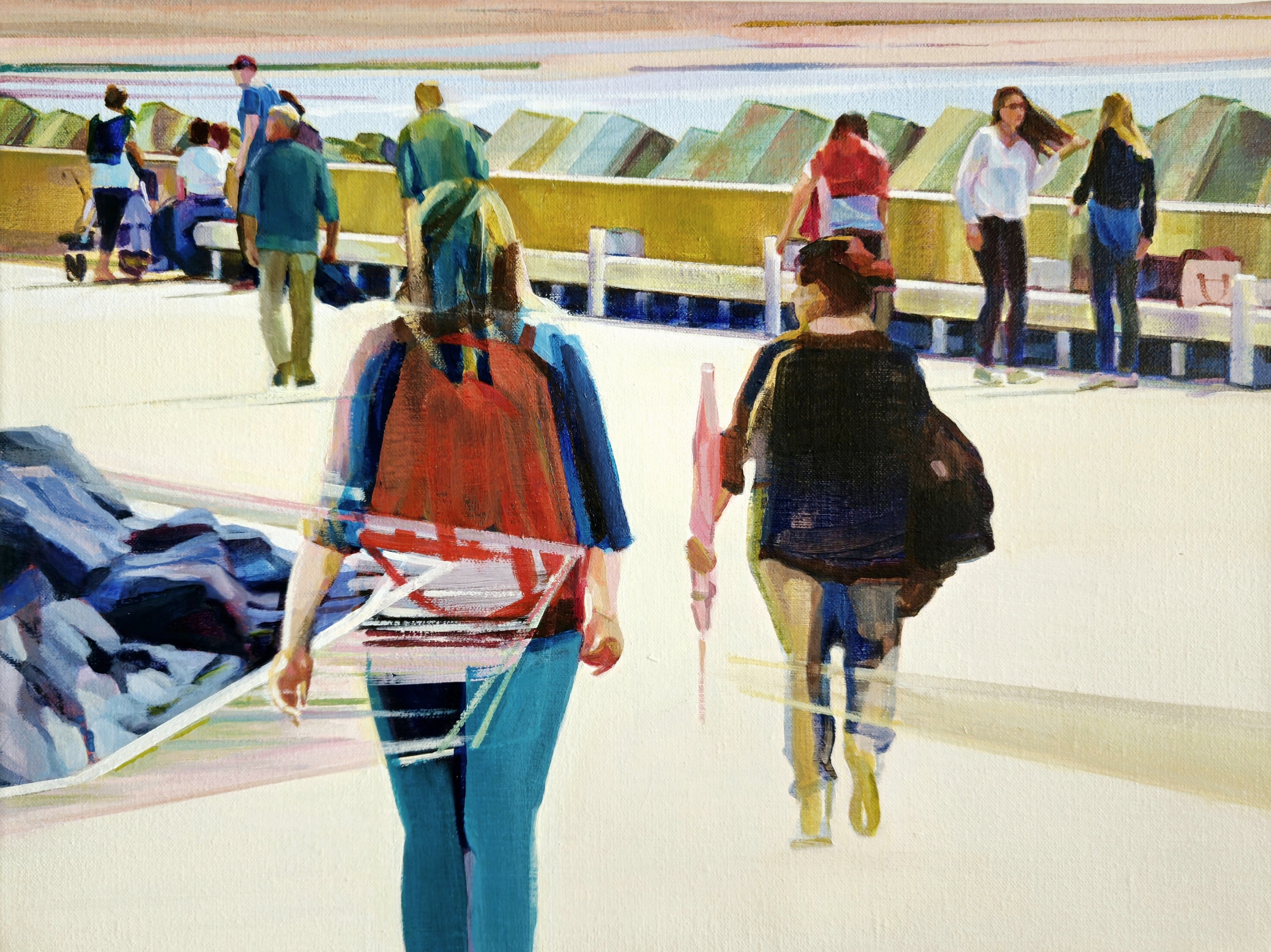 Christel Weyts maakt acrylschilderijen over de mens en zijn leefomgeving. Ze filtert taferelen die vooral het esthetische en de harmonie in een situatie willen benadrukken. Ze houdt aparte composities vast binnen de grenzen van het canvas. Licht en beweging zijn hierbij vaak belangrijk.