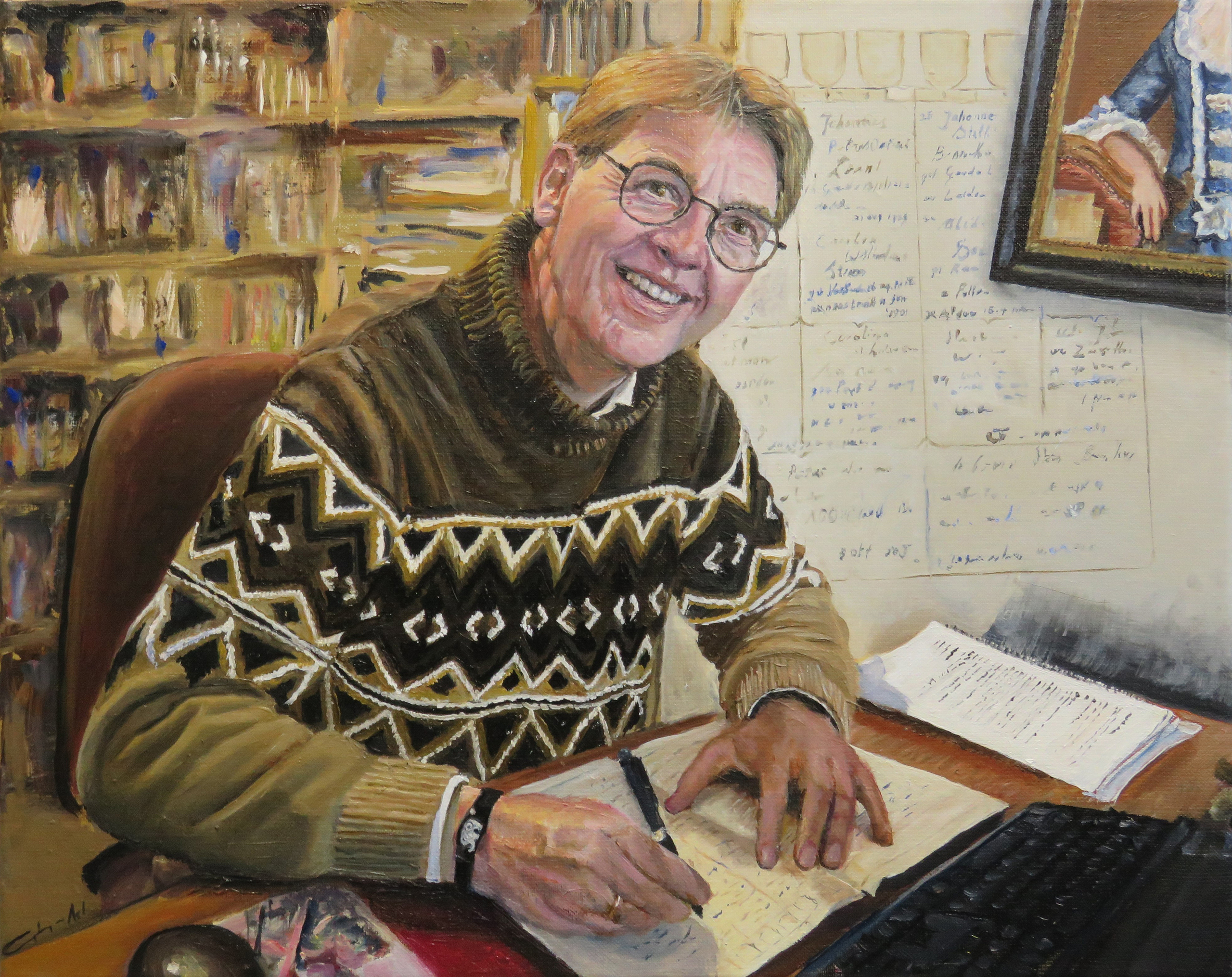In zijn studeerkamer. Met aandacht wordt historie gelezen en geschreven