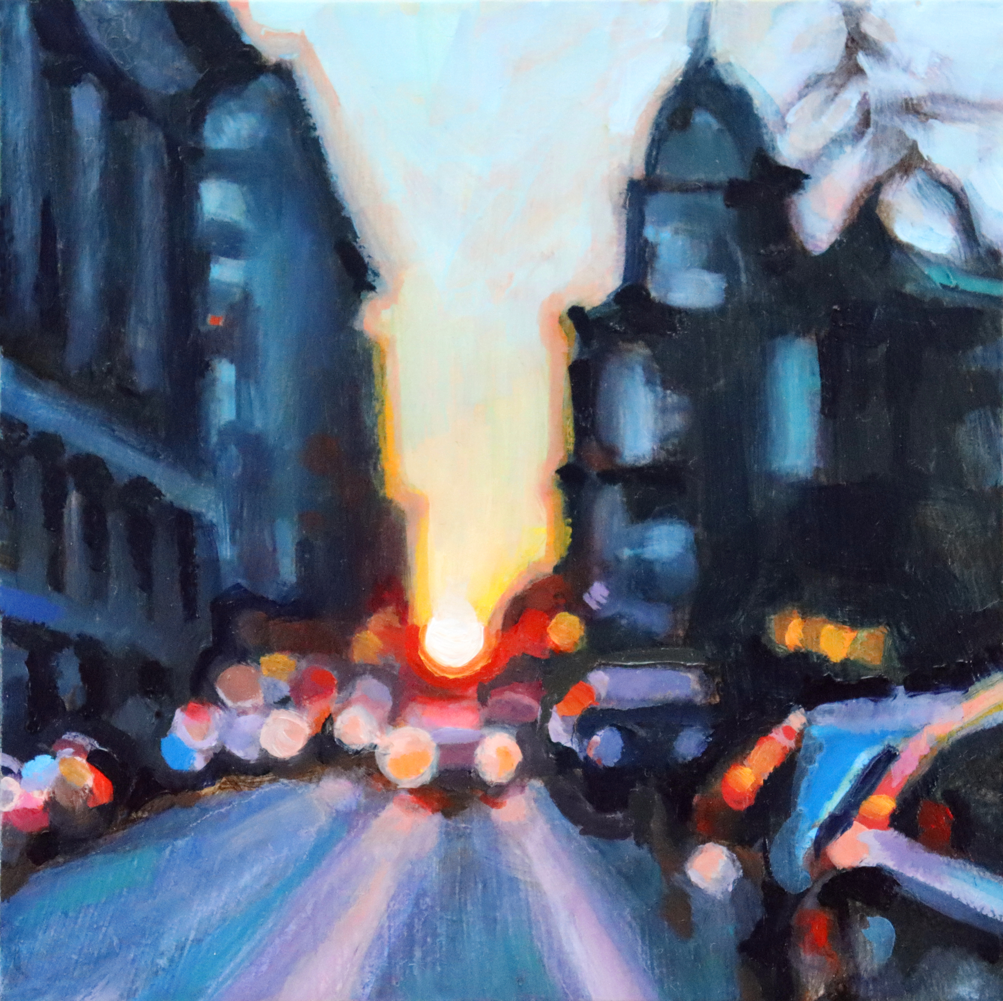 Zonsondergang op straat.