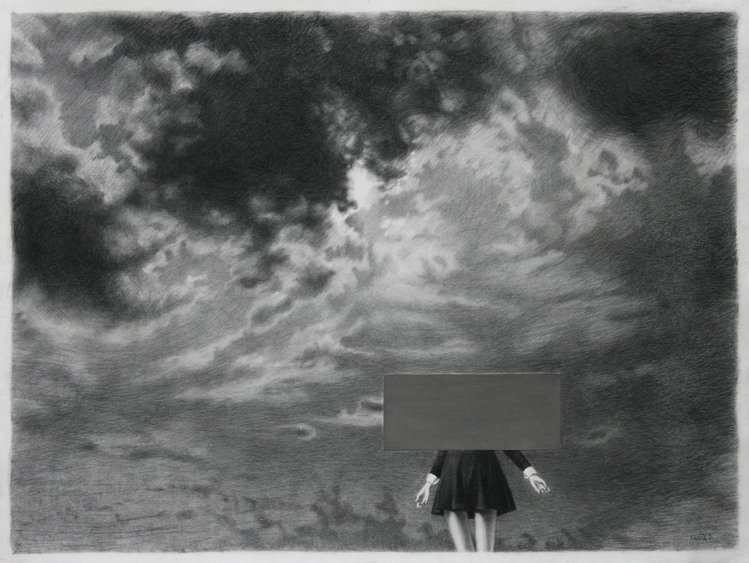 Houtskool Meisje Hoofdeloos Zee Wolken Licht Donker Groot Klein