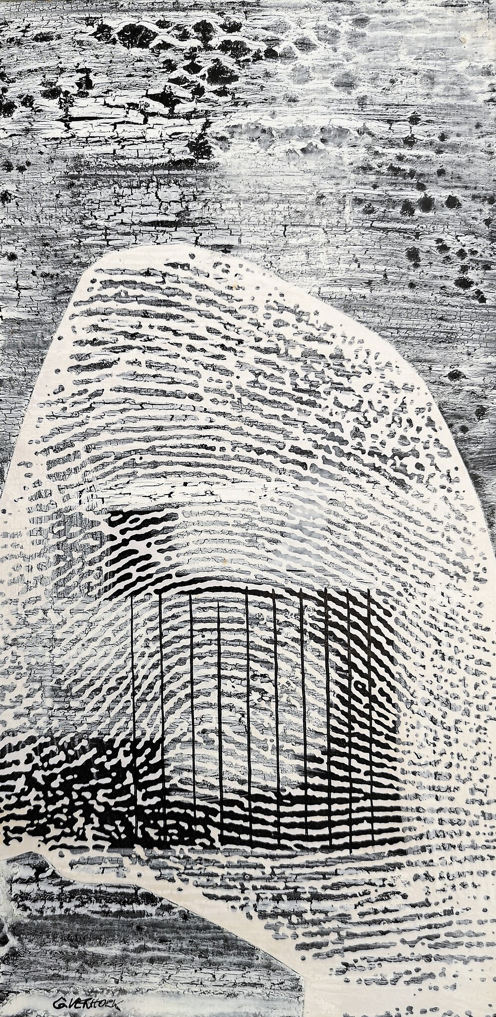 architectonische vormen in lyrisch abstracte schilderijen die gerelateerd zijn aan ( breuk)lijnen in het rots landschap van de Noord-Vogesen.