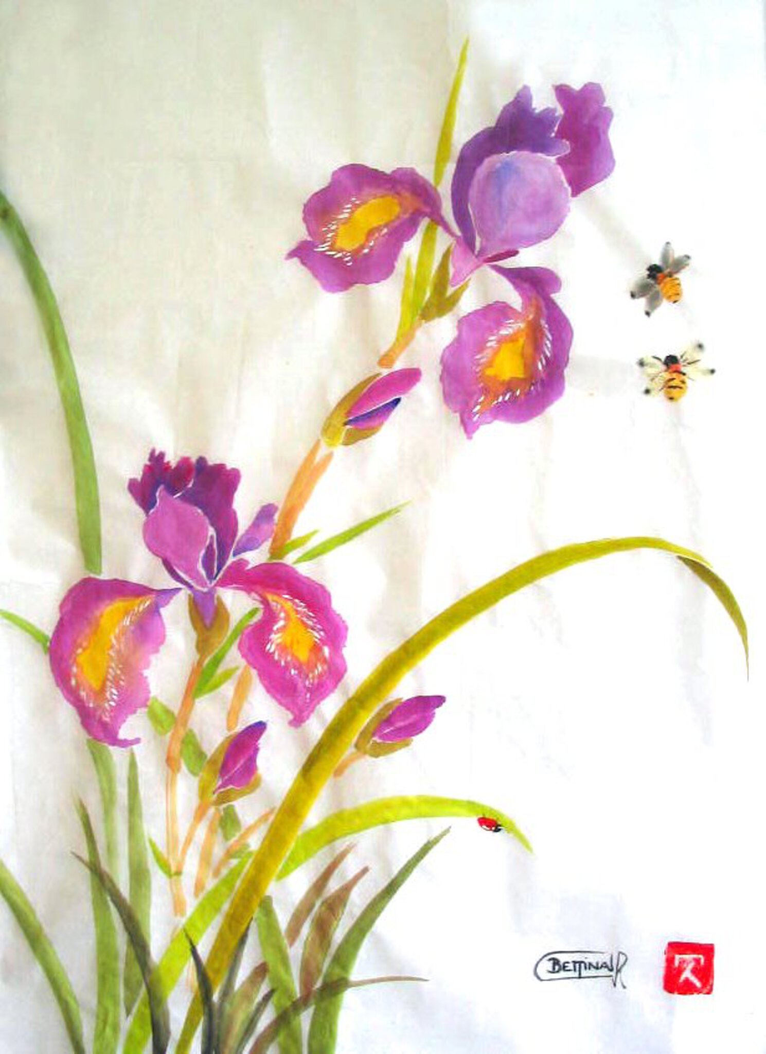 Bloemen Aquarel Iris Bijen Rijstpapier
