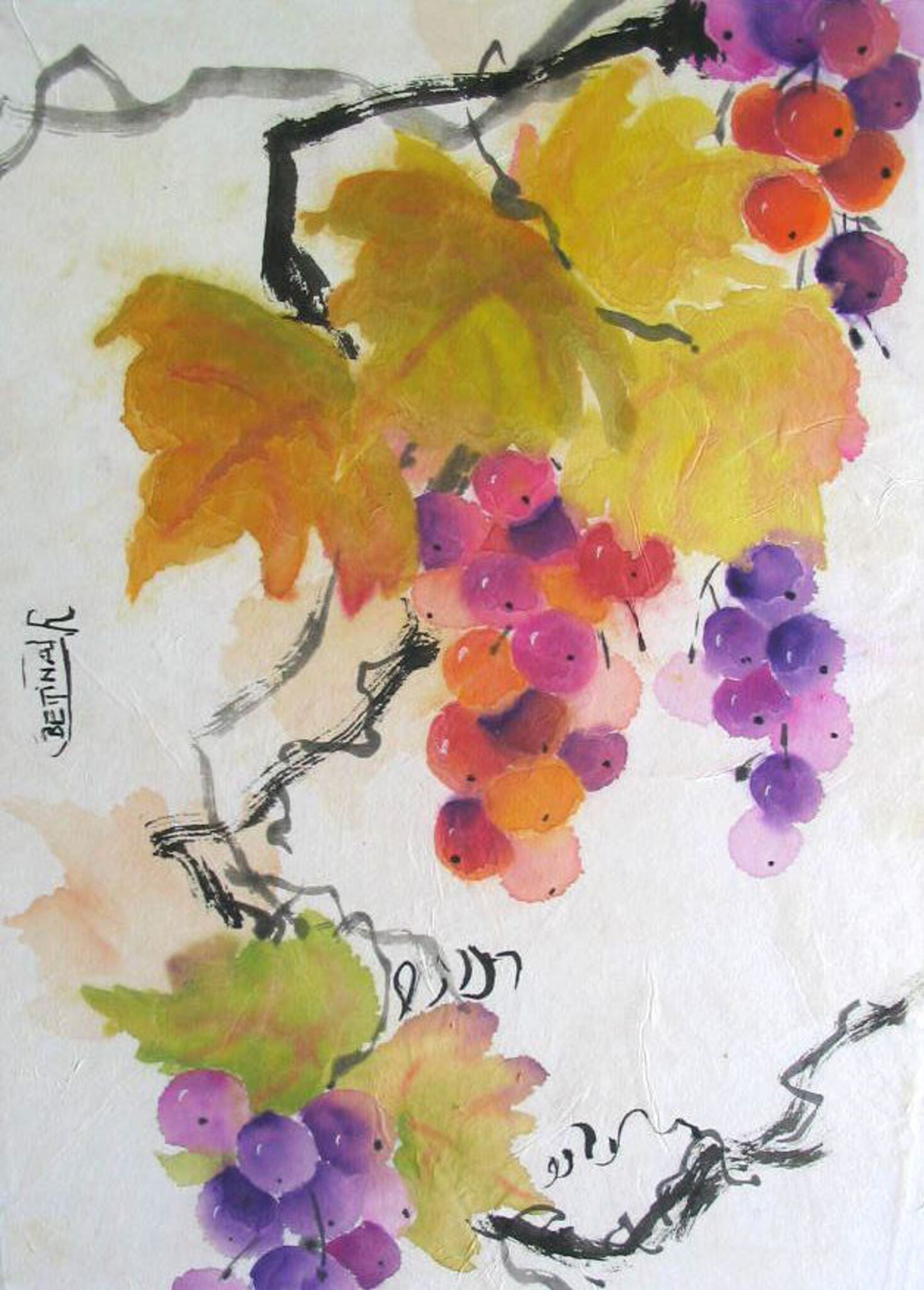 Aquarel Inkt Druiven Rijstpapier