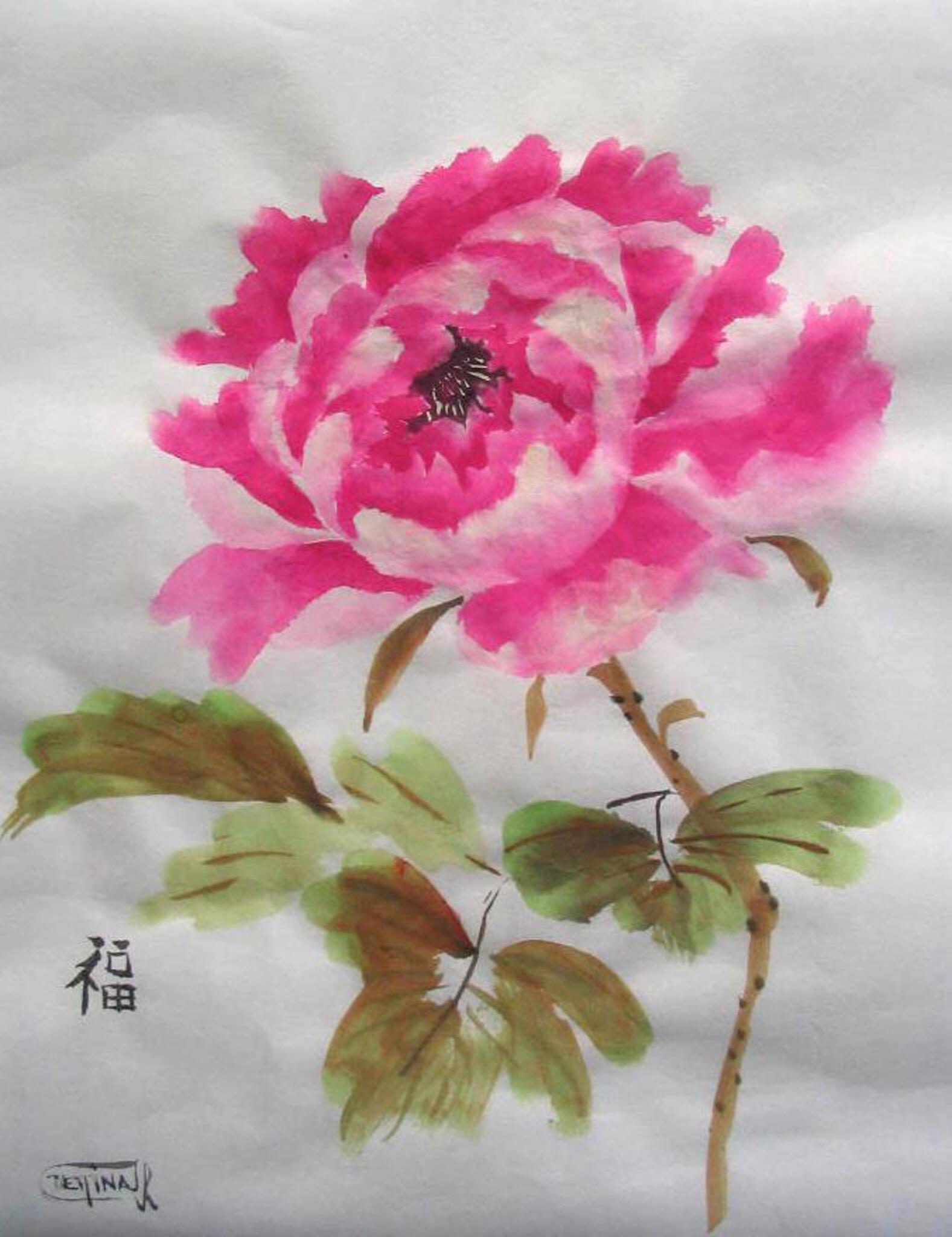 Aquarel en chinese inkt op rijstpapier, ingelijst. 30x40cm Prijs = € 55,00 - 60% korting ! Verzending met track and trace binnen NL = € 8,25