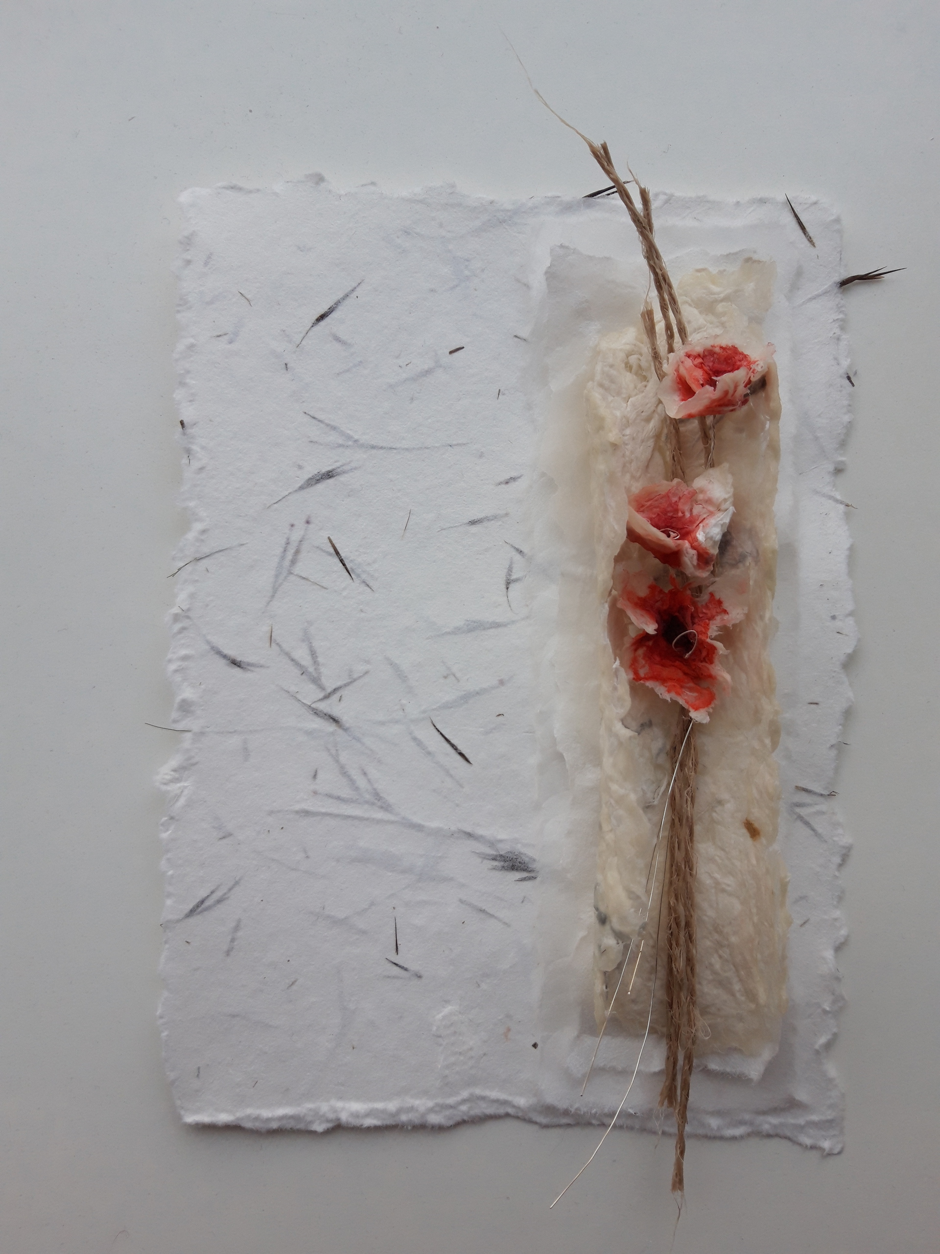 Dit beeld is 100% handgemaakt van handgeschept papier en rijstpapier. Afmeting c.a. 15x10cm.