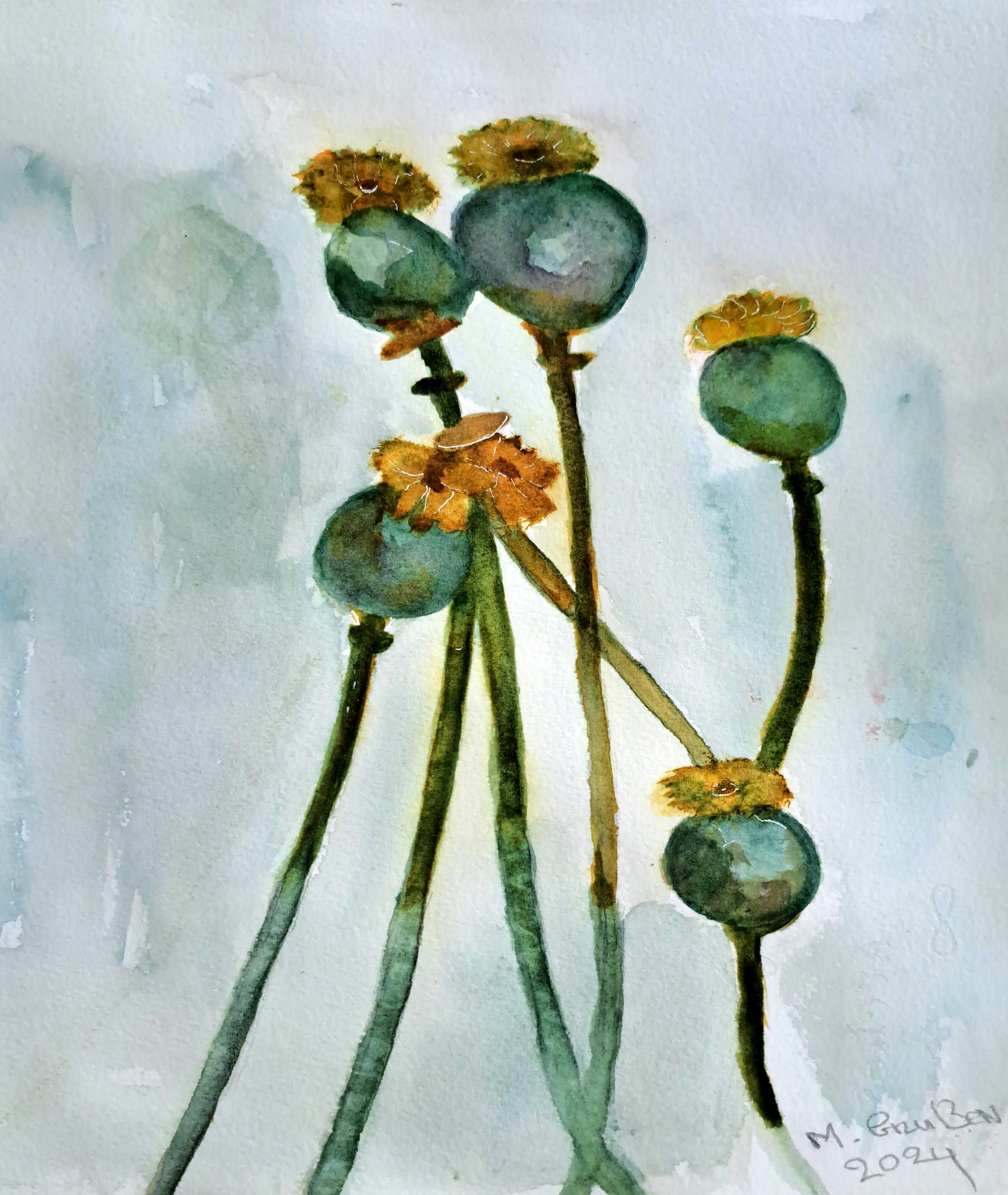 Papaver zaad bollen mooie kleuren met de verf van Daniël smith Mooi rustgevend aquarel wat kan ik er nog meer over vertellen? Ingelijst verzonden.