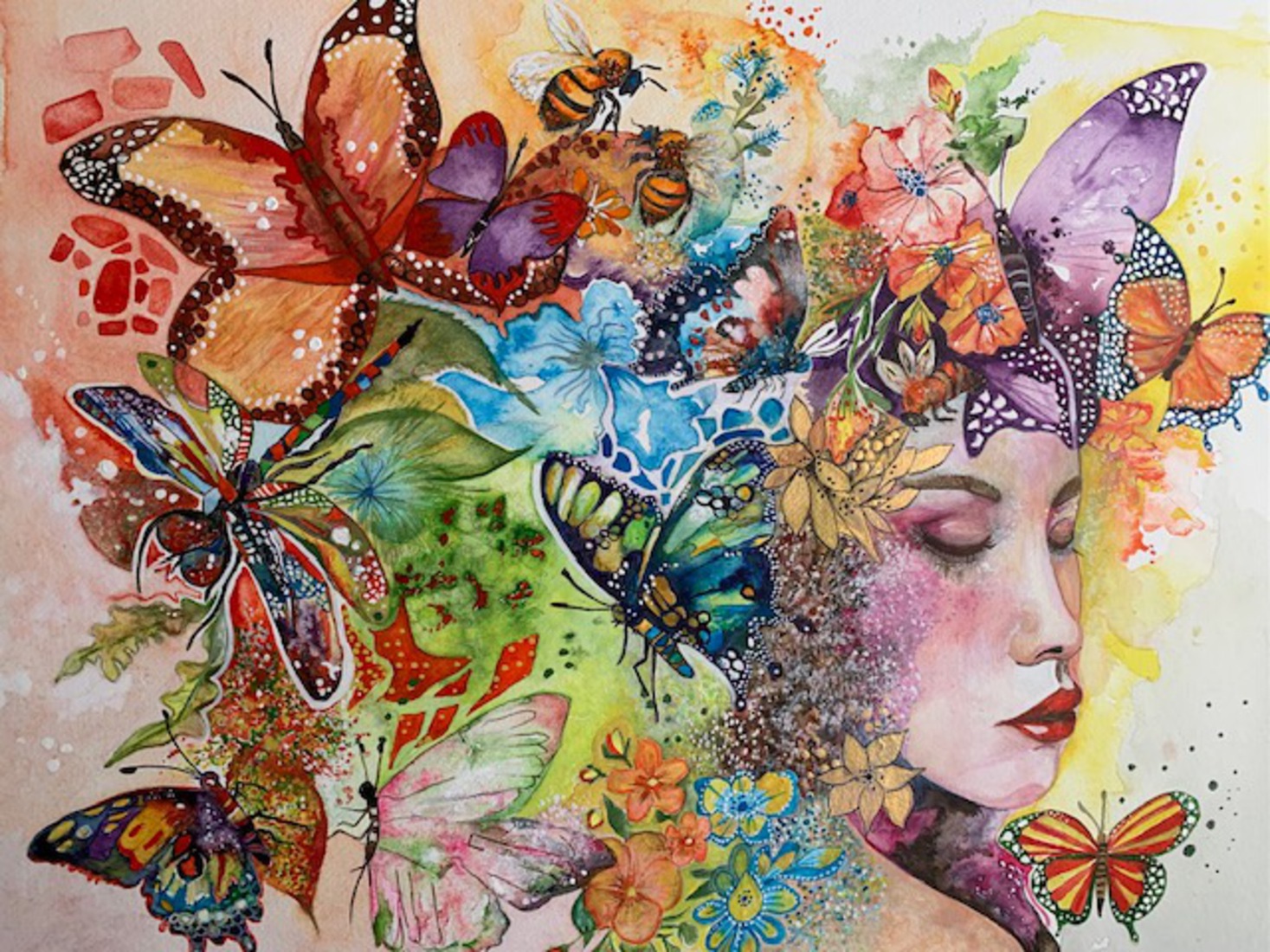 Vrouw - vlinders - bloemen 1e prijs Kunstmanifestatie weekend september 2024