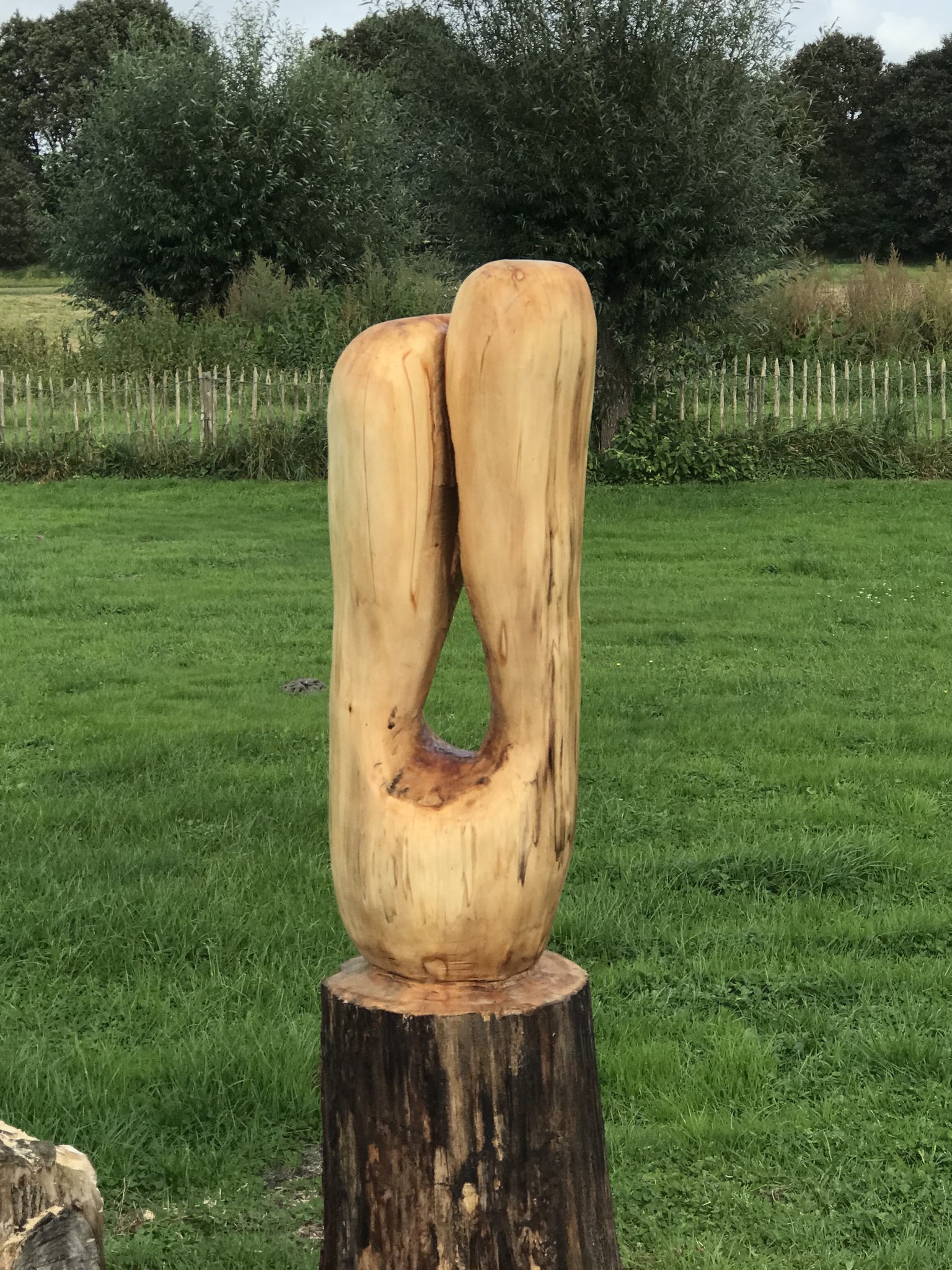 Dikke wilg heeft de rigoureuze snoeibeurt niet overleefd. Omgetoverd tot een organische vorm. Een hele ontdekkingsreis omdat het hout nog vers was , de boom goed geworteld is en omdat ik zoiets bog nooit had gedaan.