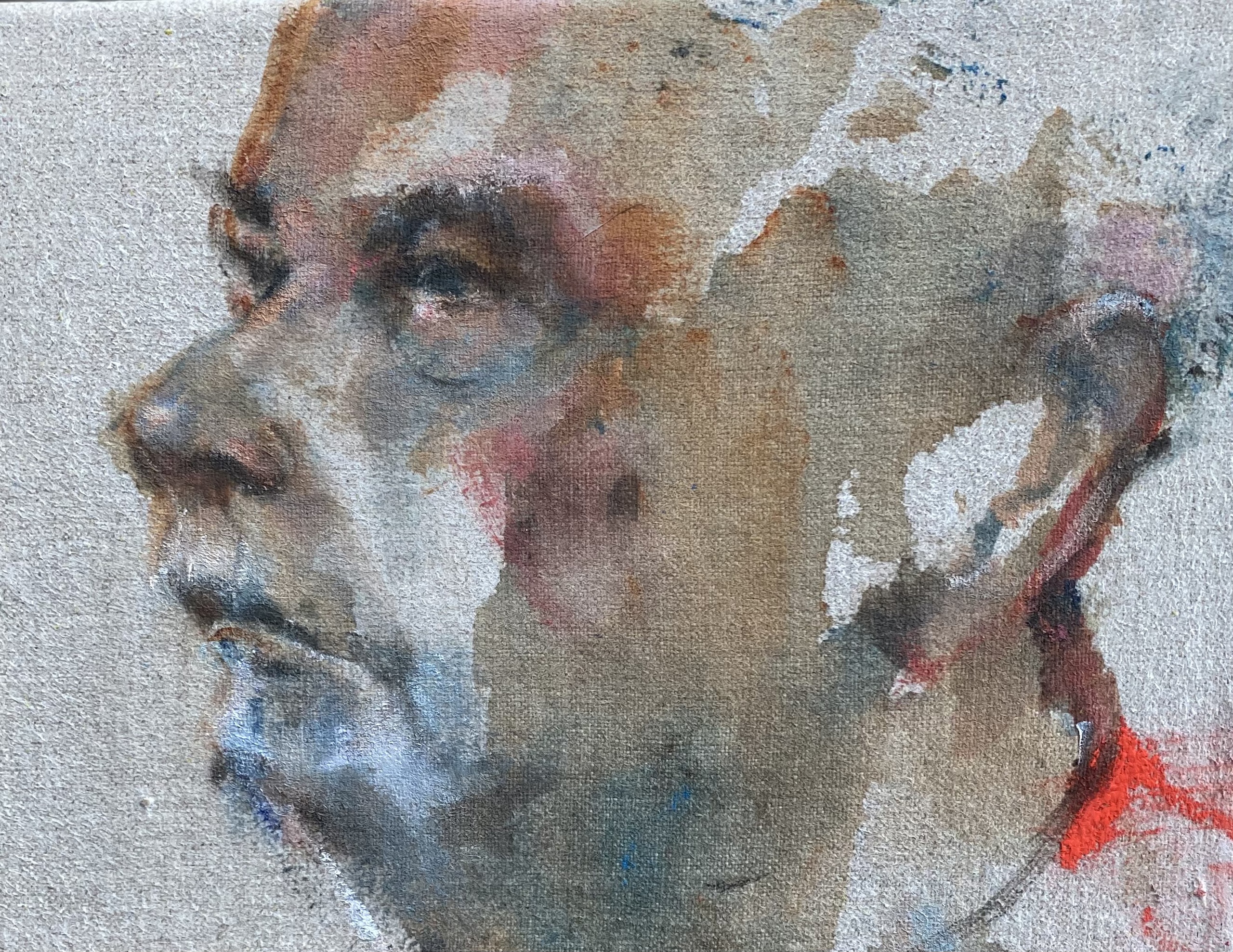 Acryl Portret Man Op Pastelkrijt Linnen Naturel