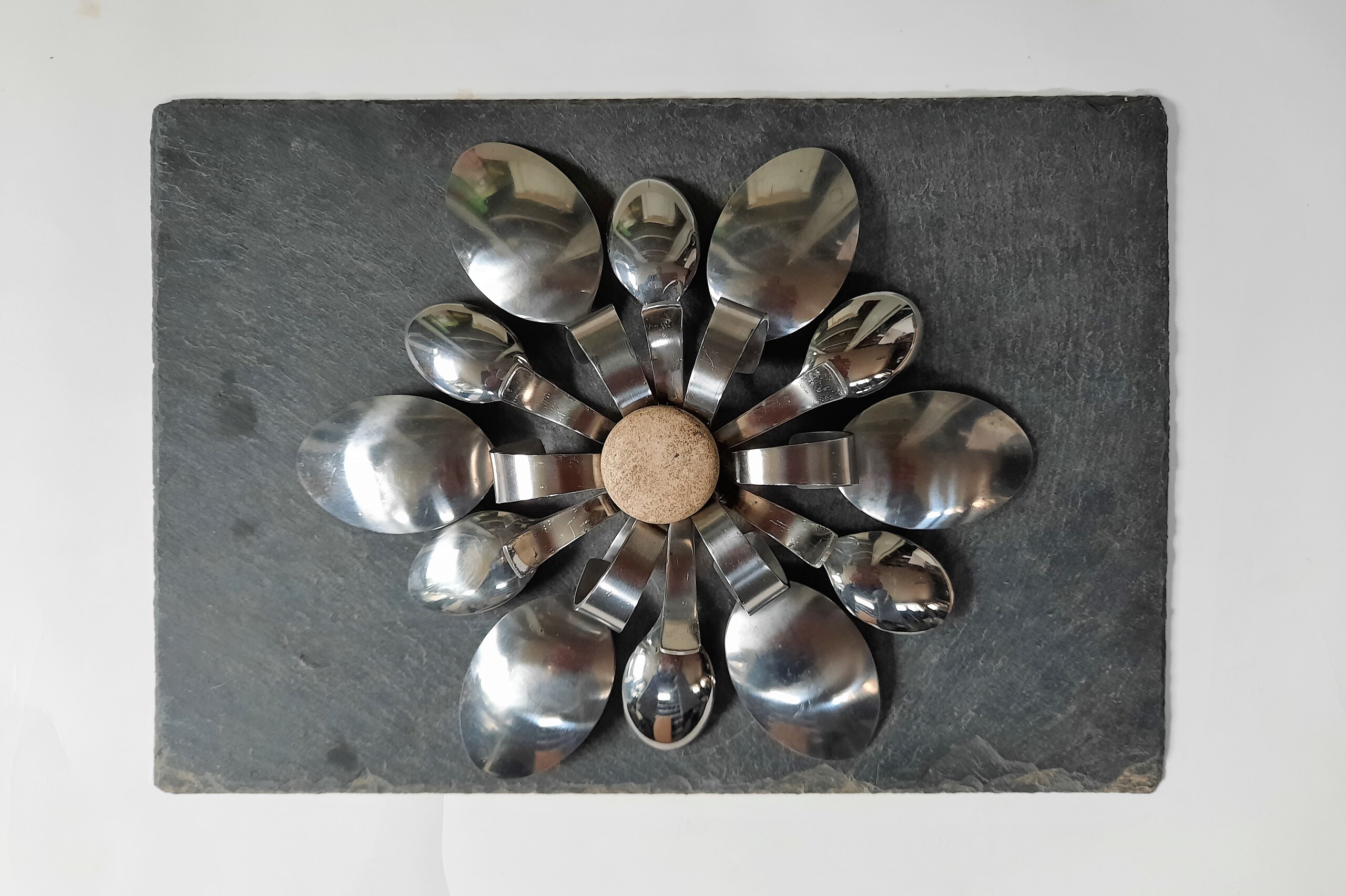 rvs lepelbloem op leisteen 2.