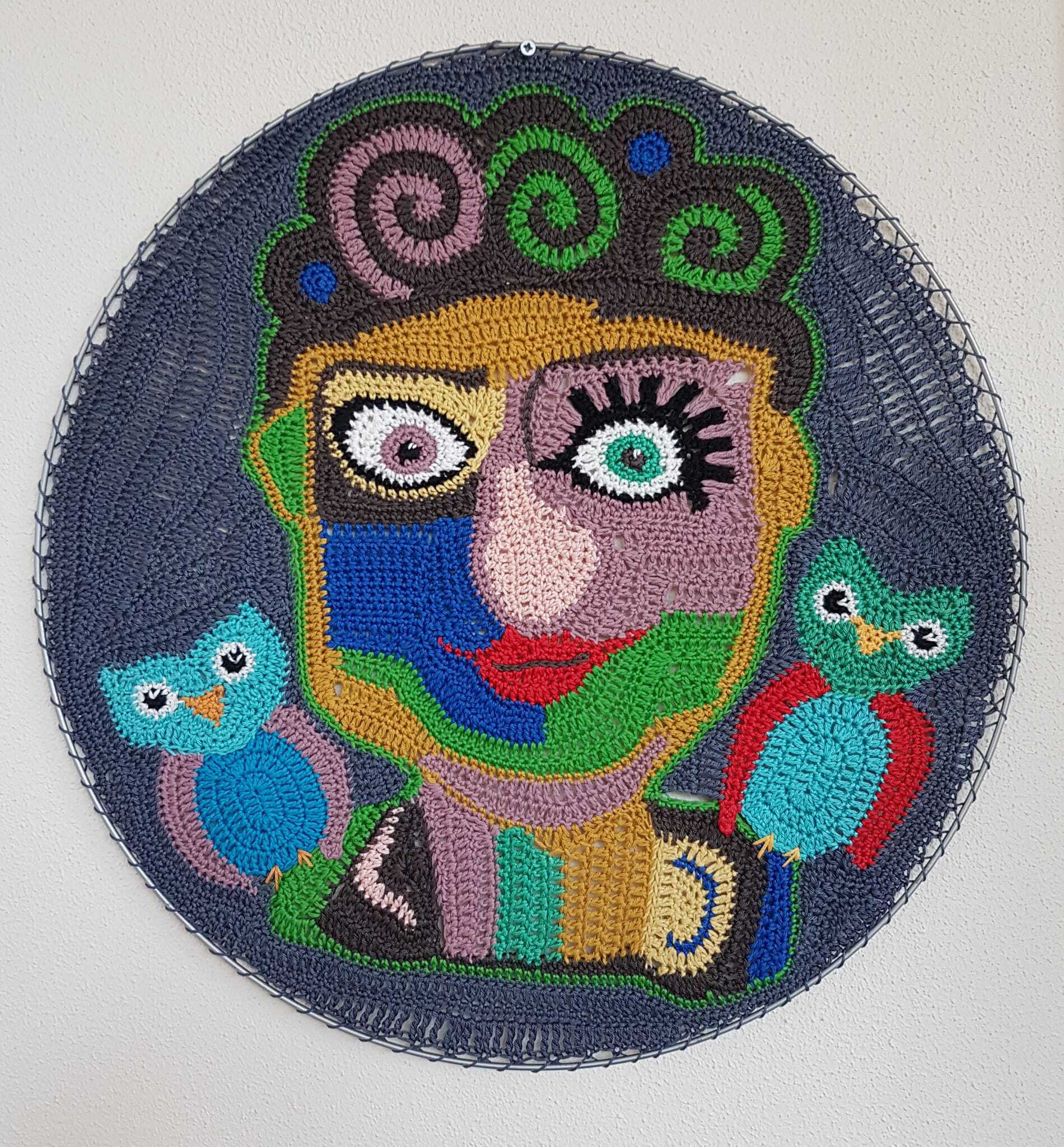 Intuïtief Decoratie Haakwerk Crochet Freeformcrochet Vrolijk Gezicht Clown Uil Uiltjes Face Decoration Funny Grappig Verbaasd Surprised