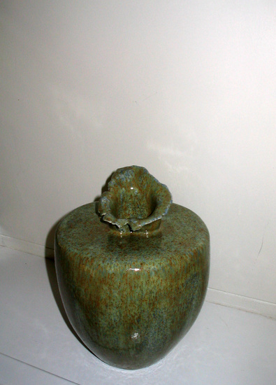 Met de hand opgebouwd uit ringen klei. Bisquit gebakken, vervolgens geglazuurd en opnieuw gestookt