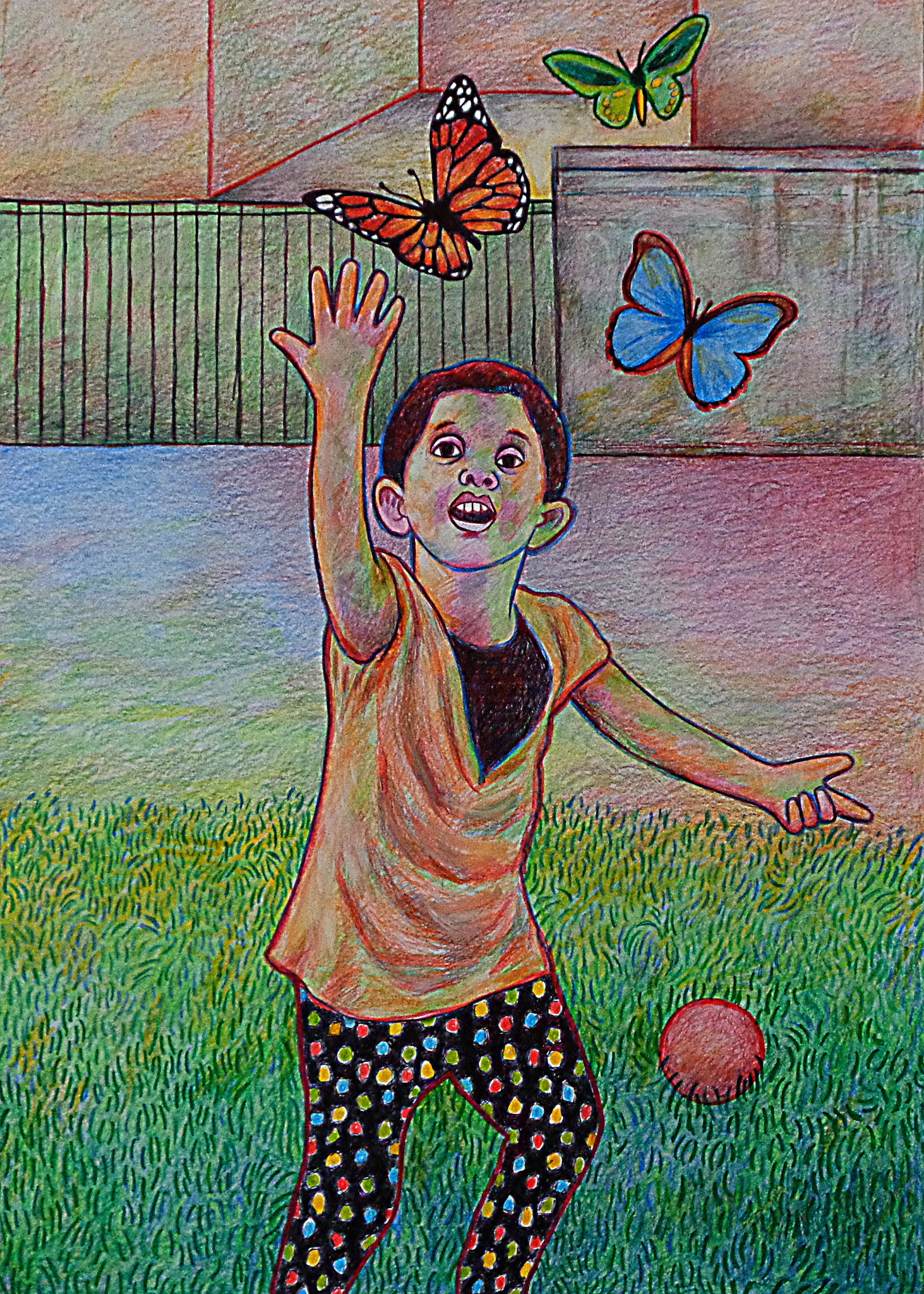 Vrij werk in kleurpotlood stift en ballpoint