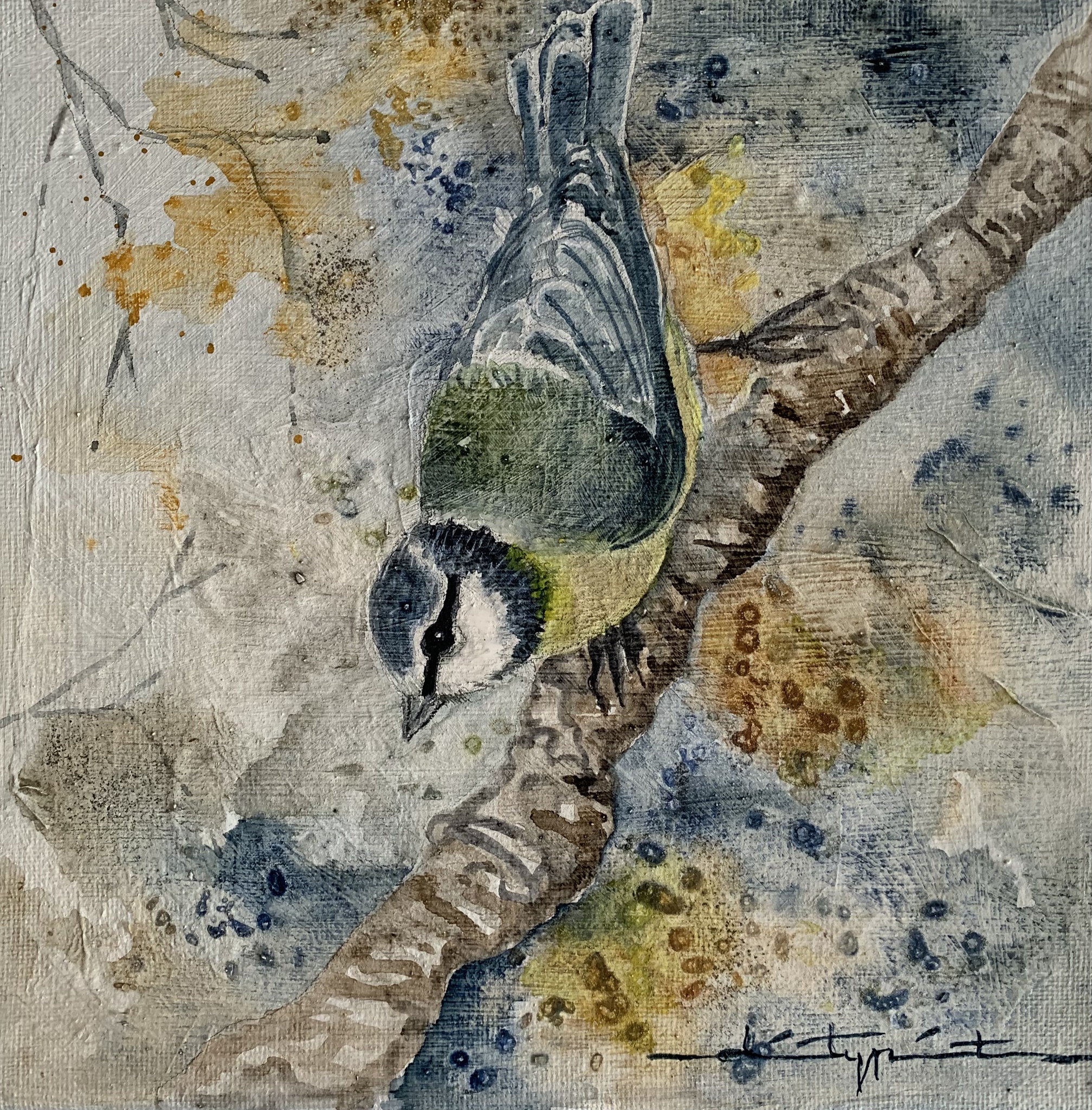 Pimpelmees Aquarel Doek Vogel Tak Blauw