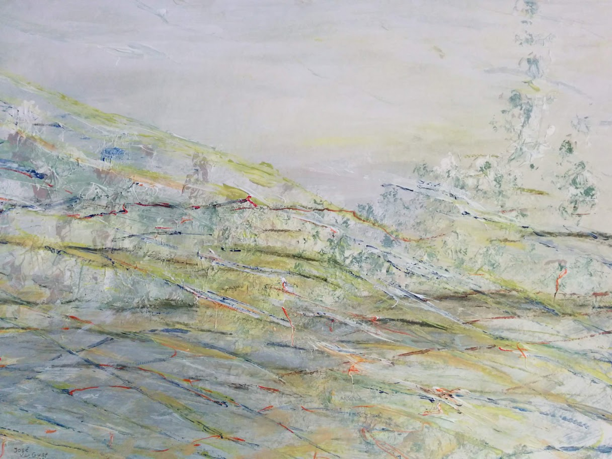 Jose van Gurp (1956), studeerde in 1989 af aan de Kunstacademie in Utrecht. In haar werk zie je de kleuren van aarde, water en lucht; in haar schilderen voegt ze daar haar eigen kleuren aan toe.