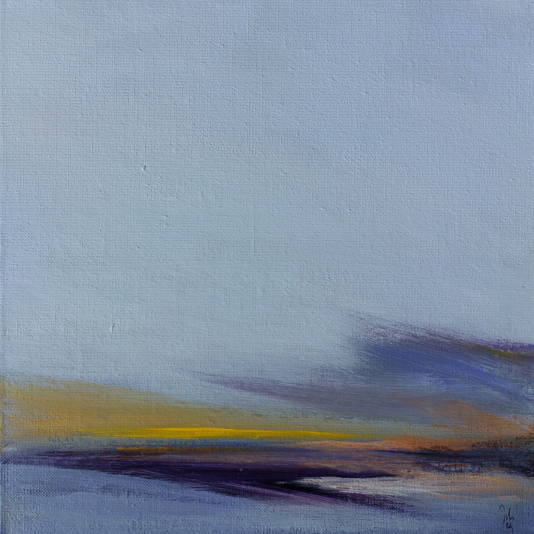De natuur. Het land, het groen, het water en de lucht. En vogels soms. Expressief, bijna abstract, maar altijd herkenbaar. Helder, eenvoudig en krachtig.