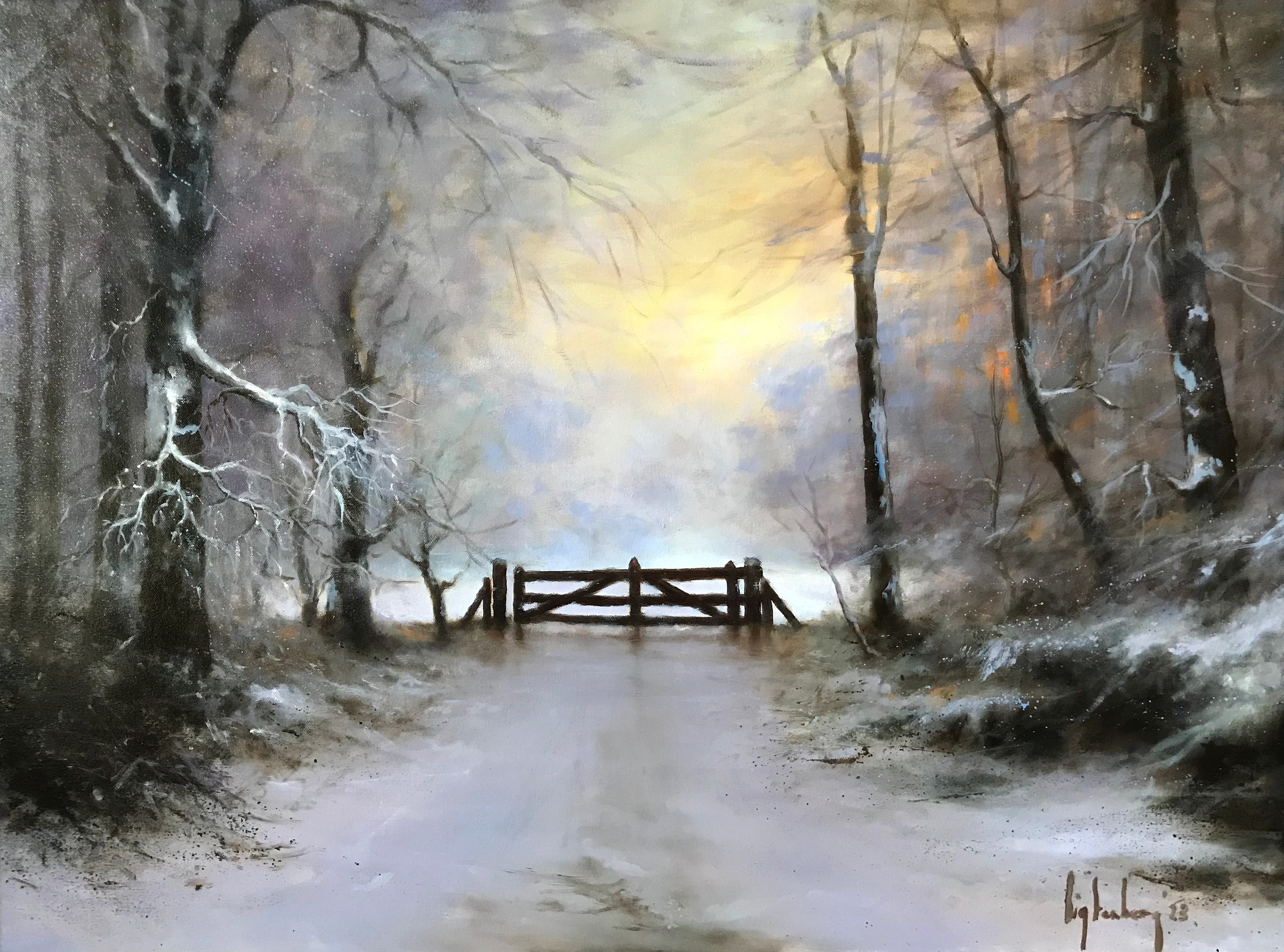 Figuratief Landschap Olieverf Natuur Sneeuw Winter Bos Winterlandschap Realisme Sfeer Hek Bospad