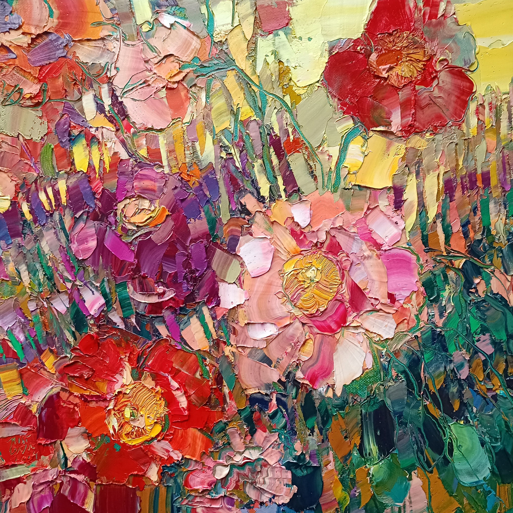 Geschilderd met paletmessen en pasteuze verf (impasto) in alla prima techniek. KLIK OP DE AFBEELDING VOOR EEN CLOSE-UP.
