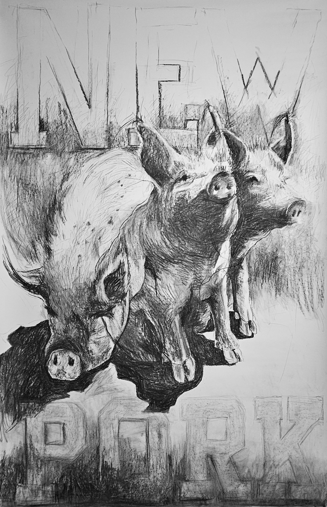 Vrije Varkens XXXL in houtskool