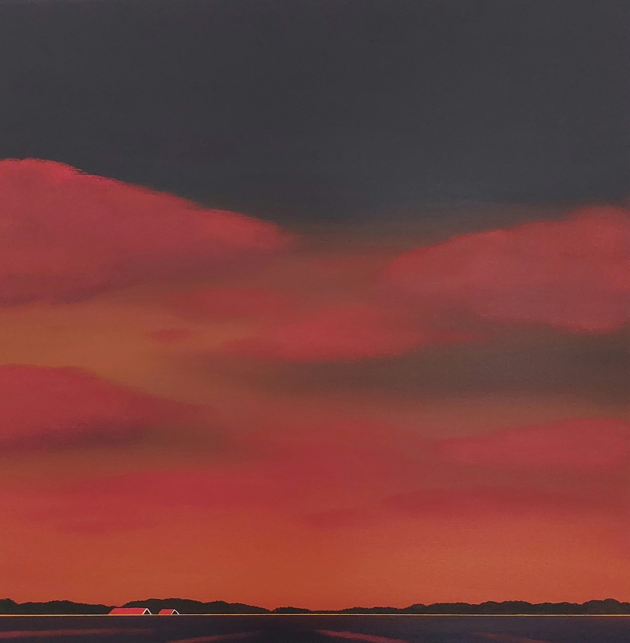 Schilderij Polder Zeeland Zonsondergang Rode Wolken Daken Rural Dutch Red Roofs