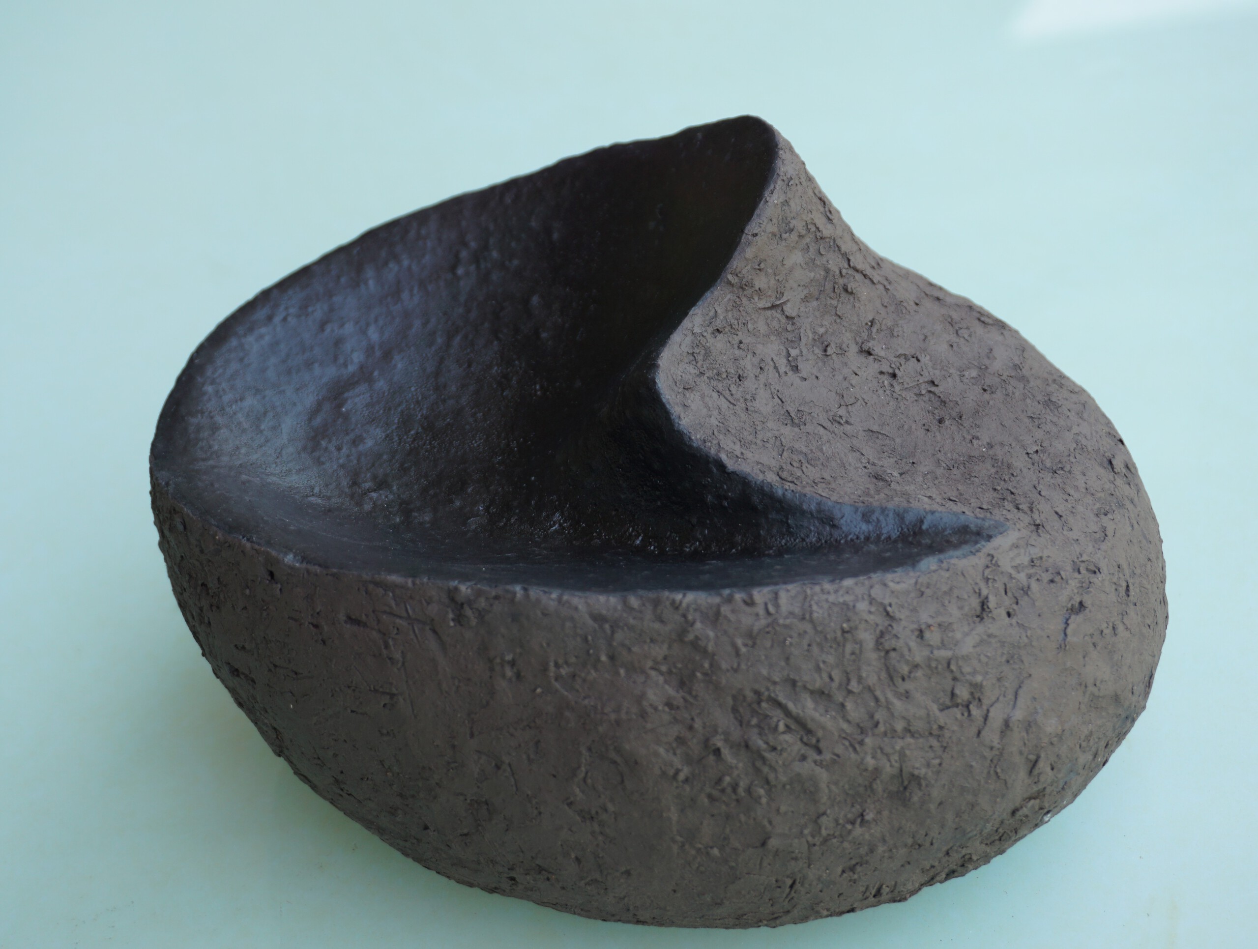 schaal van grove zwarte klei met glazuur