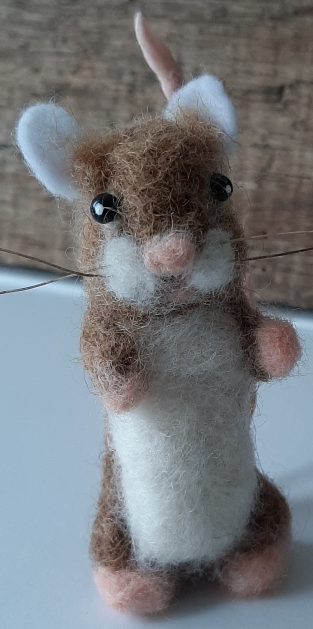 Muisje genaaldvilt wol Verkocht Afmeting: H9,5cm Het staartje is gewaxed