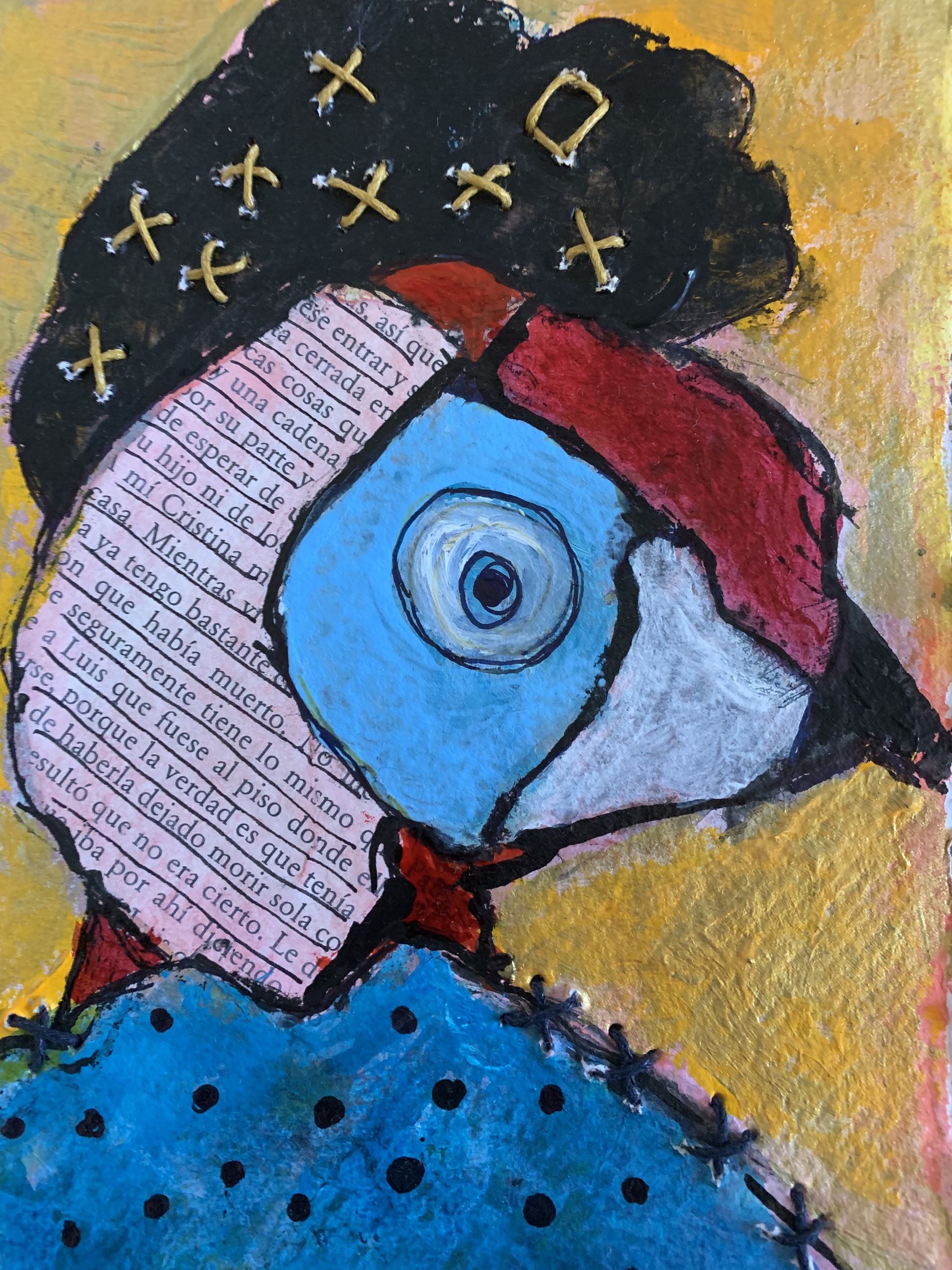 Blauw Gold Yellow Blue Mixed Media Chicken Bush