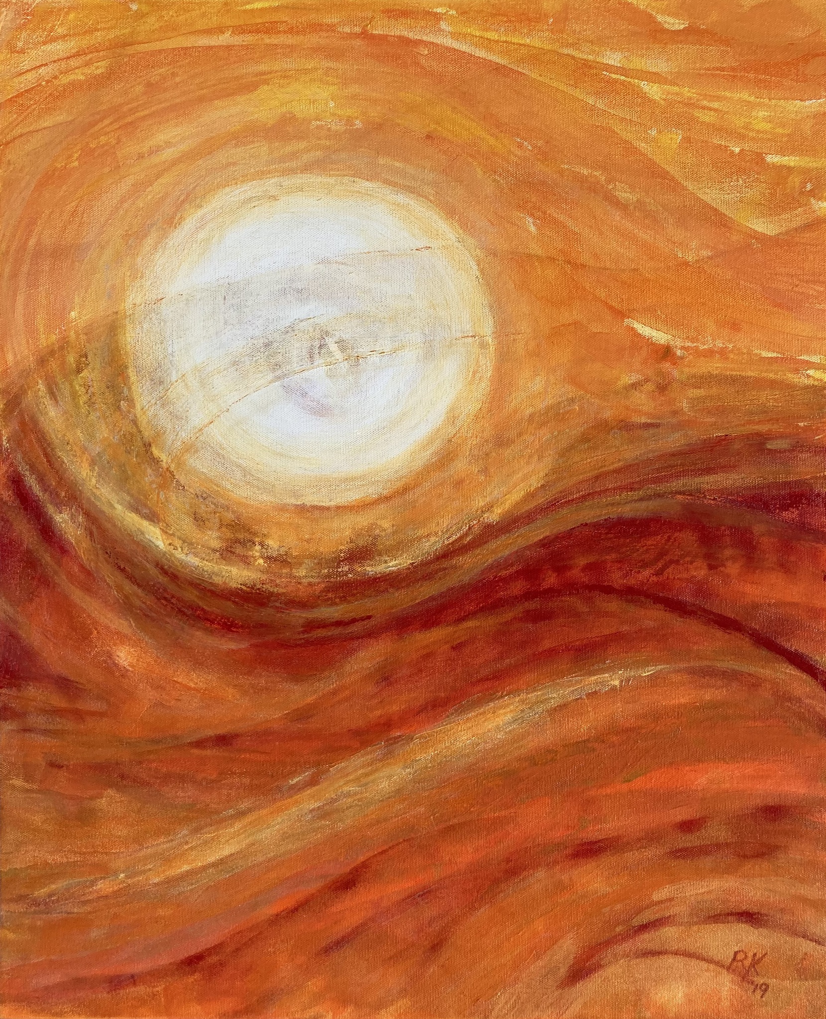 Dit schilderij is gemaakt naar aanleiding van een gedicht over het golden hour.