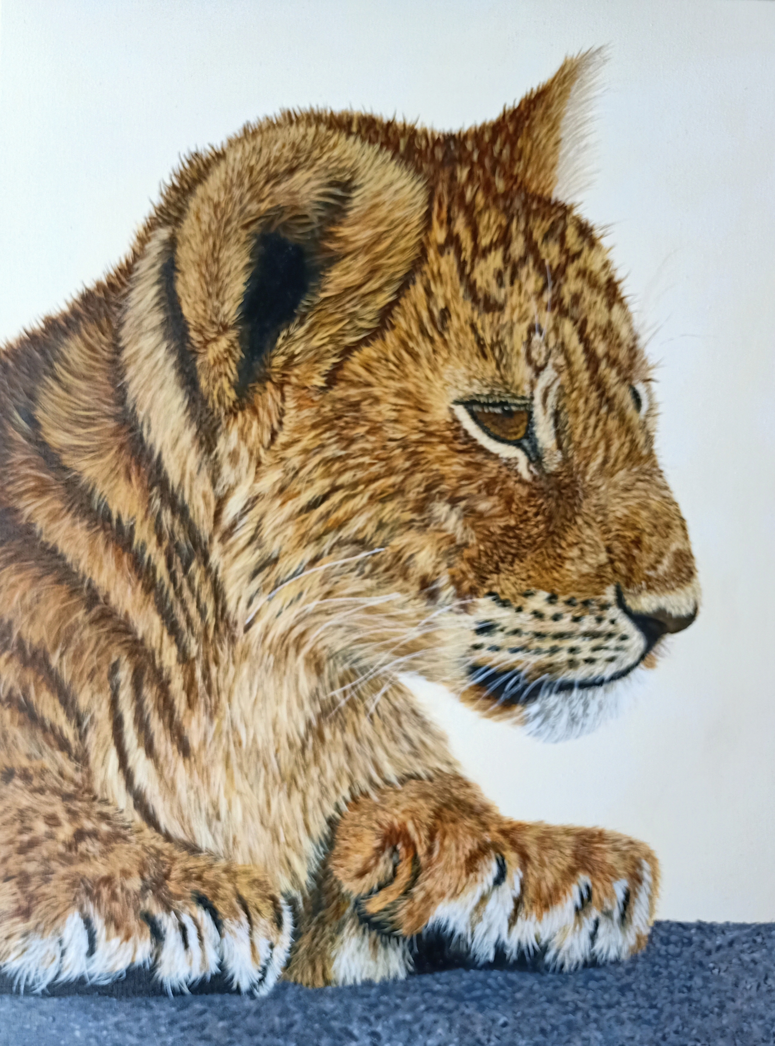 Leeuwen welp. Acrylverf schilderij op canvas 60 X 80m