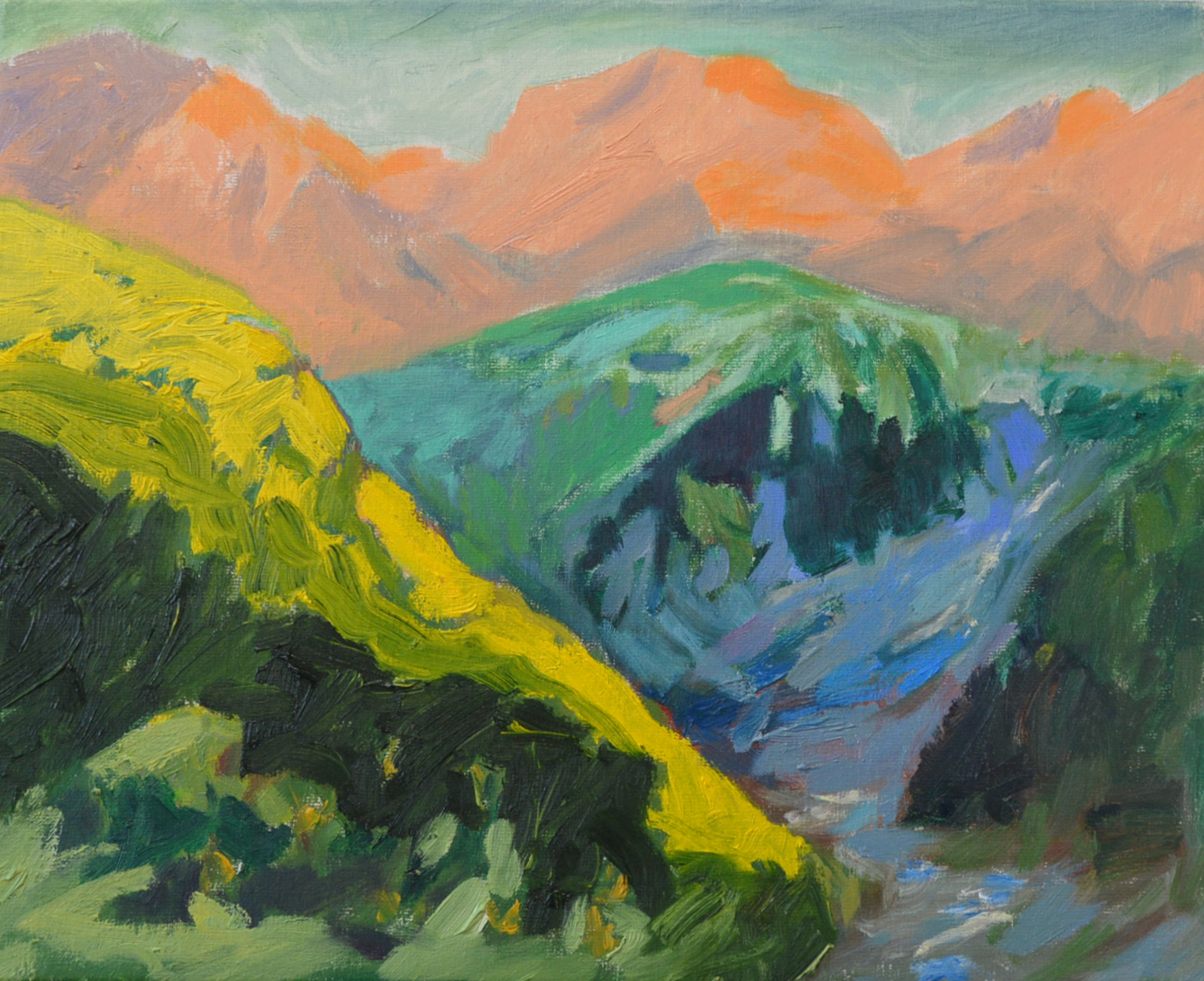 Sophie Bekkering toont in haar schilderijen en keramiek de grootse natuur. Begonnen vanuit wandelingen door de Gelderse bossen is ze inmiddels de bomen nagereisd tot aan en over de boomgrens. De ongerepte alpine ruimte waarin bomen, rotsen en water figureren.is haar speelveld.In haar schilderijen verbeeldt ze de onderliggende krachten van deze stille omgeving door middel van haar expressieve toetsen en levendige kleurcontrasten.